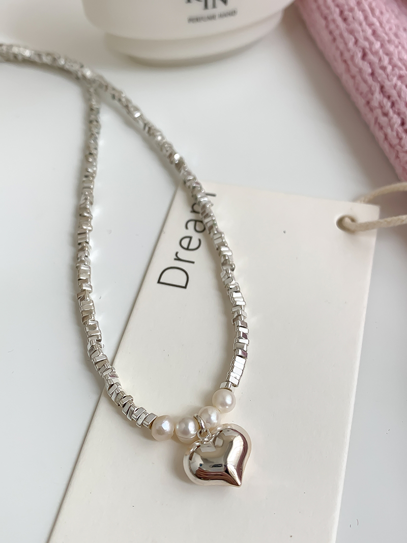法式轻奢清冷感夏季碎银子银色珍珠爱心项链高级感锁骨链颈链潮人