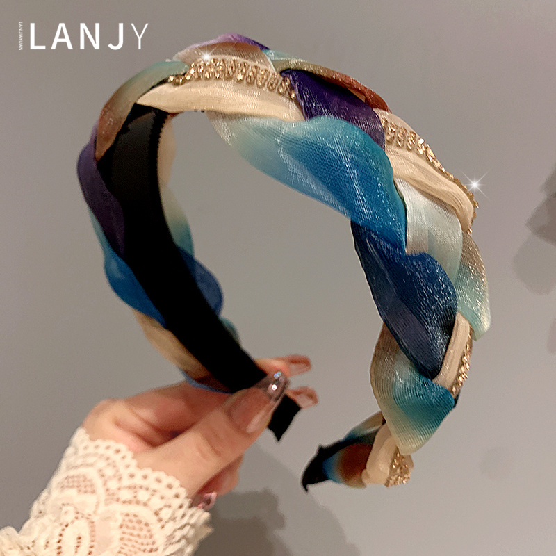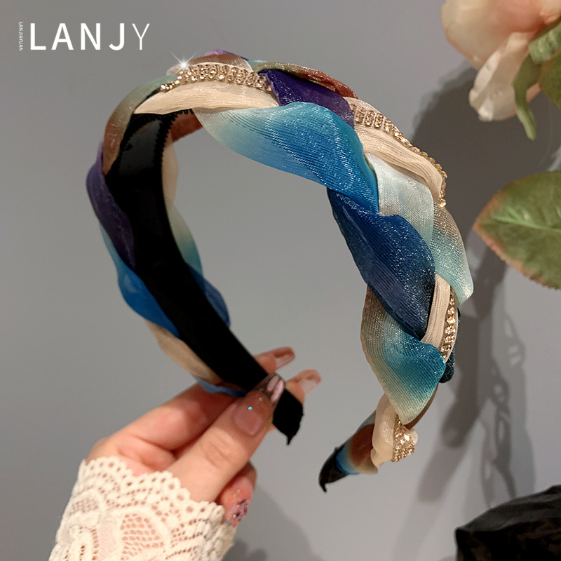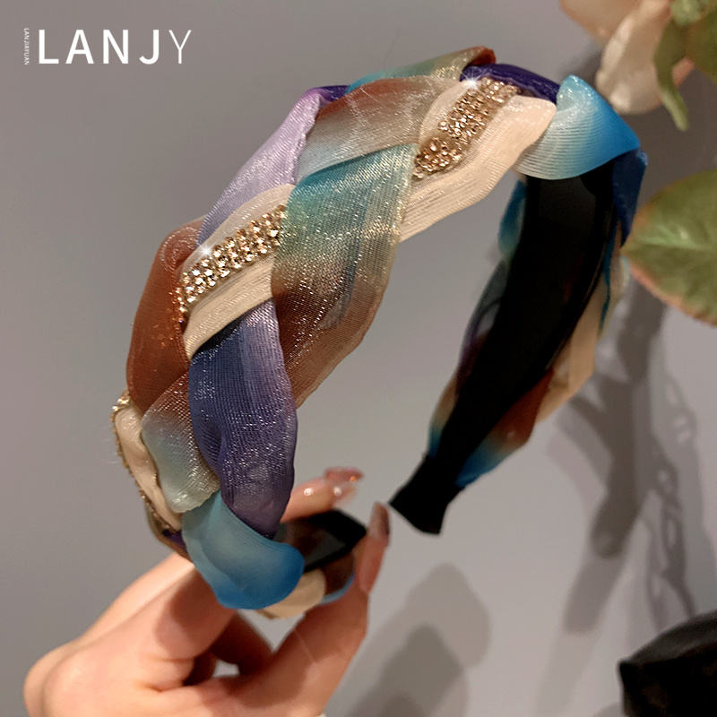 网纱发箍女高端时尚彩色水钻麻花辫压发发卡外出百搭高颅顶头箍