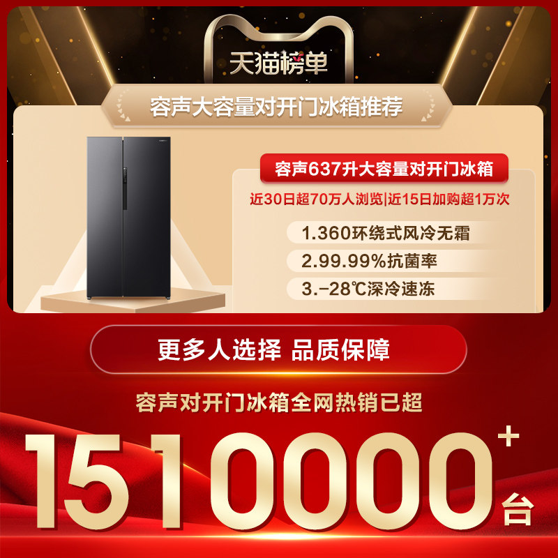 容声637L大容量对开双开门家用一级能效风冷无霜冰箱官方换新补贴