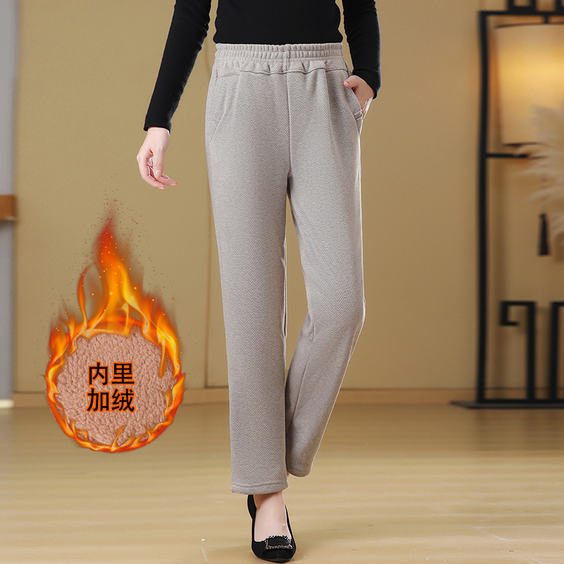 中老年女裤冬季直筒松紧腰妈妈裤子加绒加厚宽松加肥加大码200斤