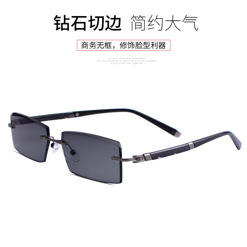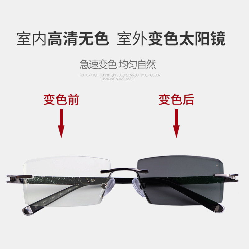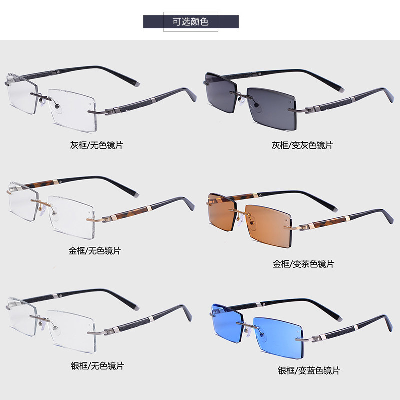 无框变色眼镜男防蓝光切边镶钻太阳镜墨镜近视平光防紫外线88025