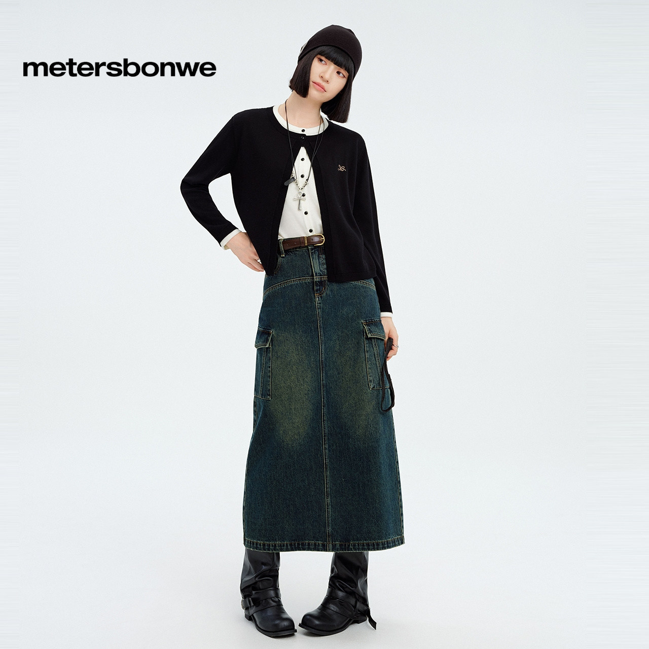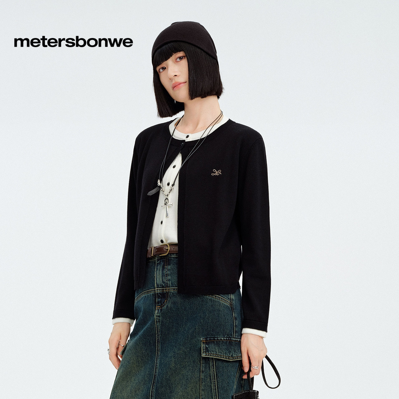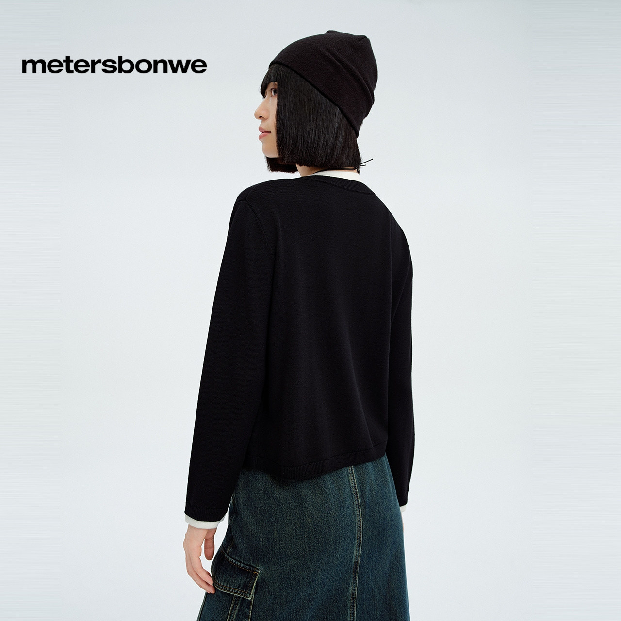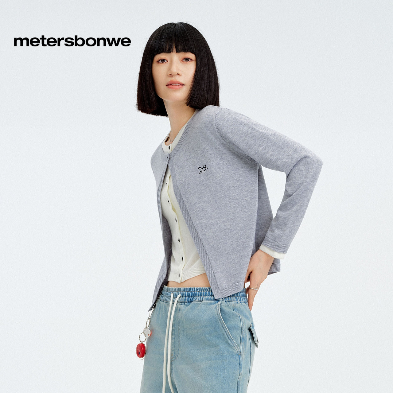[商场同款]美特斯邦威女2025秋冬新款假两件灰色圆领针织开衫上衣