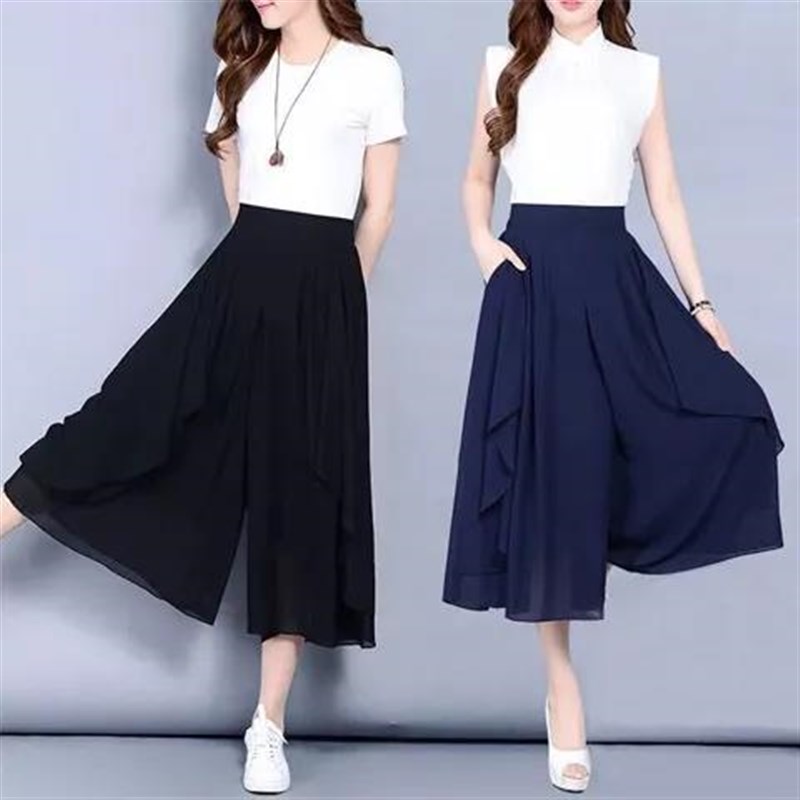 2024新款雪纺透气阔腿裤女夏七分裤高腰大码裤子女宽松休闲裤裙裤