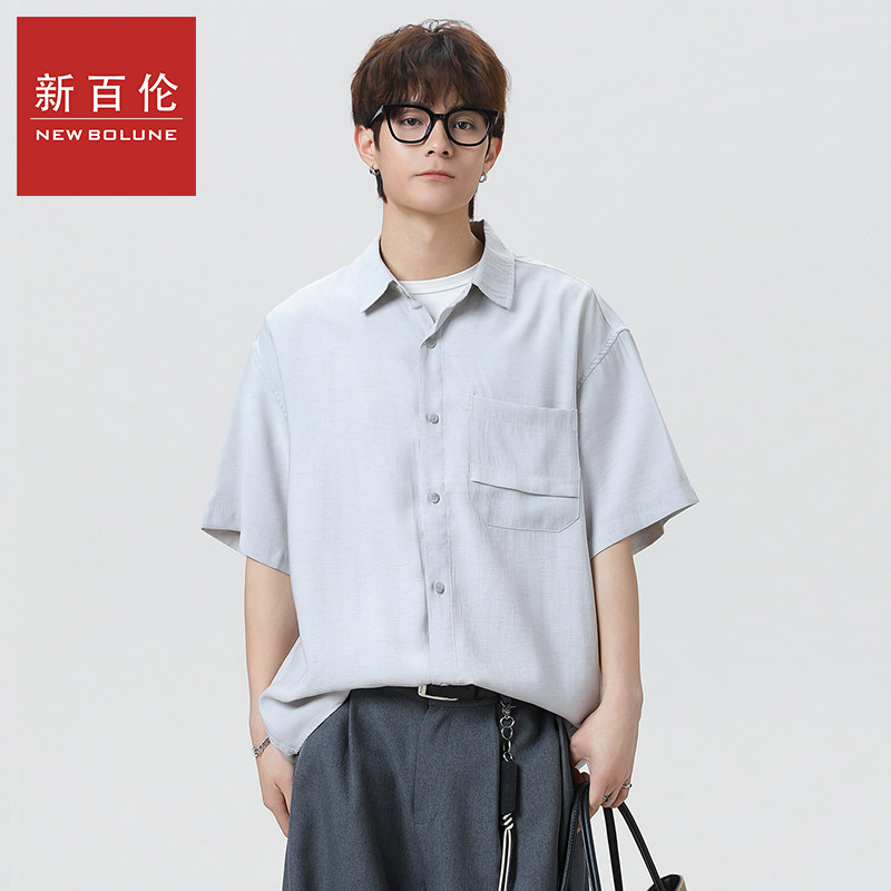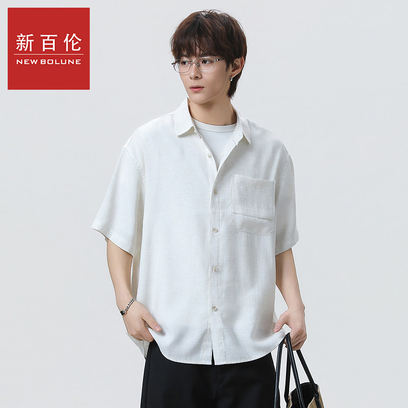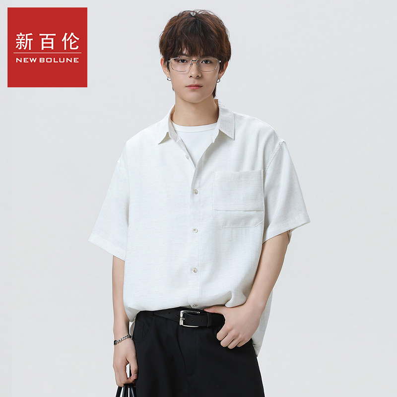 新百伦亚麻短袖衬衫男士2026夏季新款复古百搭休闲五分袖衬衣外套