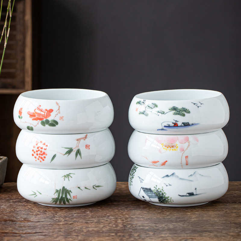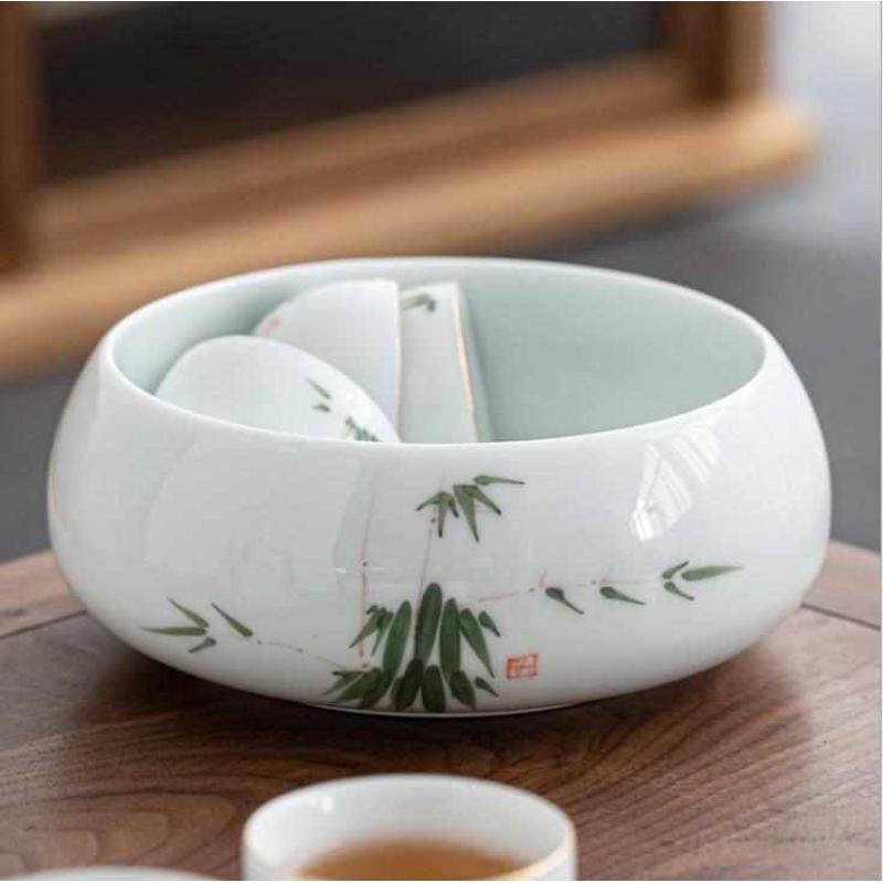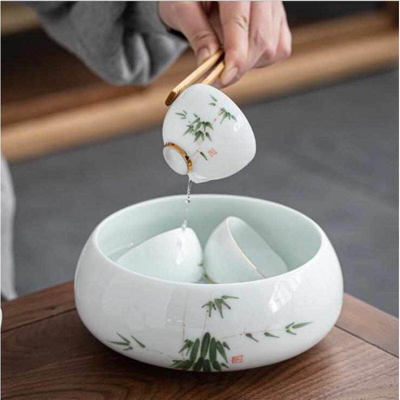 手绘陶瓷茶洗大号家用功夫茶具配件茶杯收纳盆白瓷水洗碗笔洗水盂