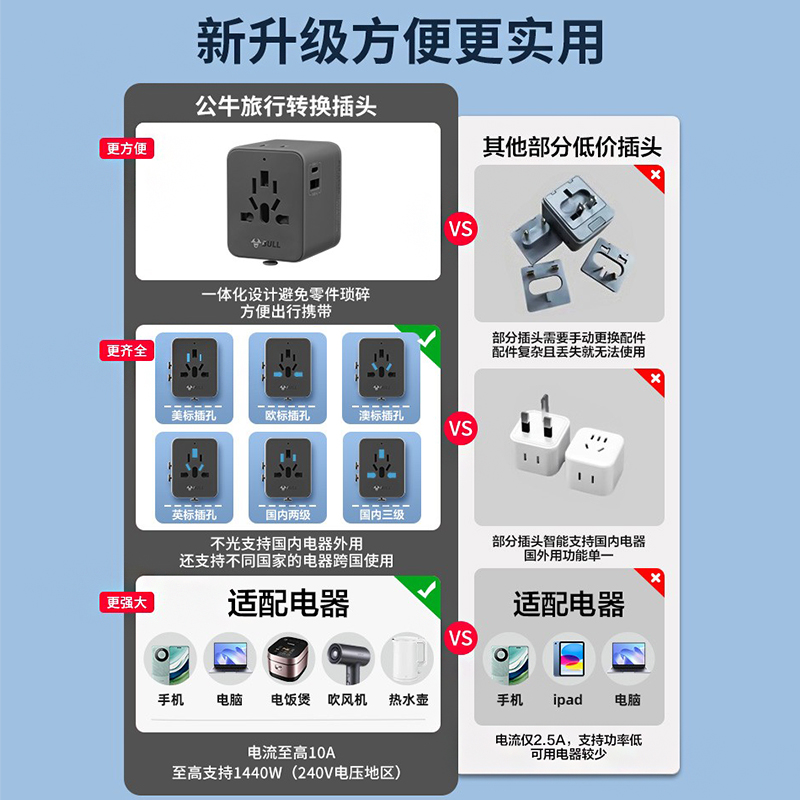 公牛多国全球通用转换插头英标美标德欧标澳标国际电源插座转换器
