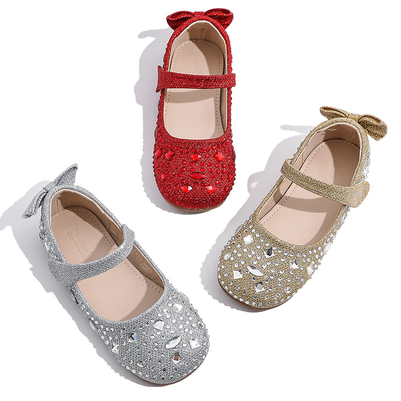 女童公主鞋女宝鞋子爱莎演出水晶鞋2024春季新款儿童皮鞋软底