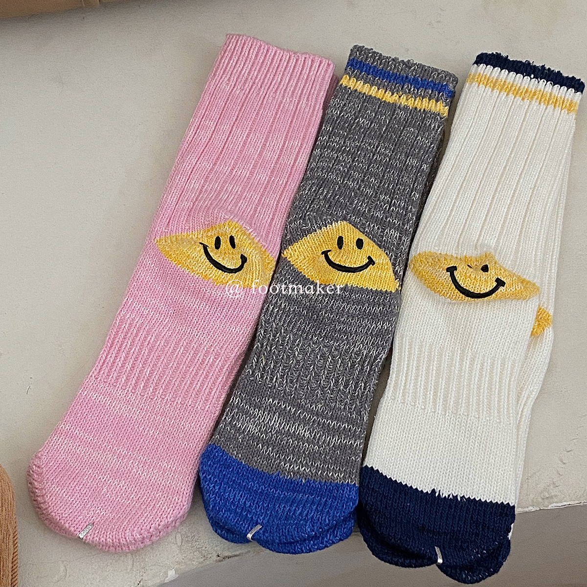 日系潮牌后脚跟笑脸袜子男女ins潮秋冬季保暖个性粗线中筒堆堆袜