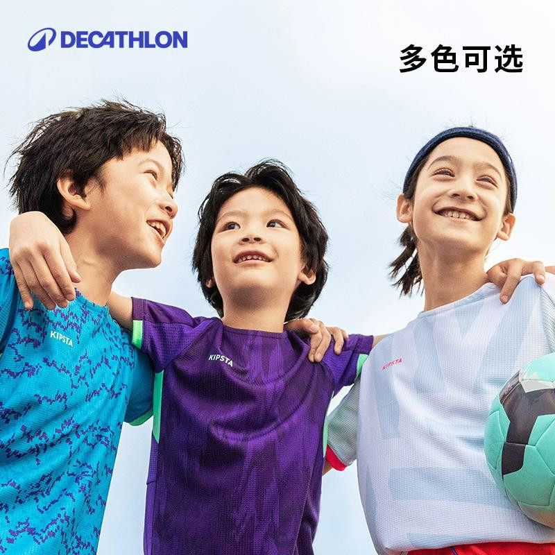 迪卡侬儿童运动服短袖T恤足球男女童速干T恤短袖透气运动夏KIDO