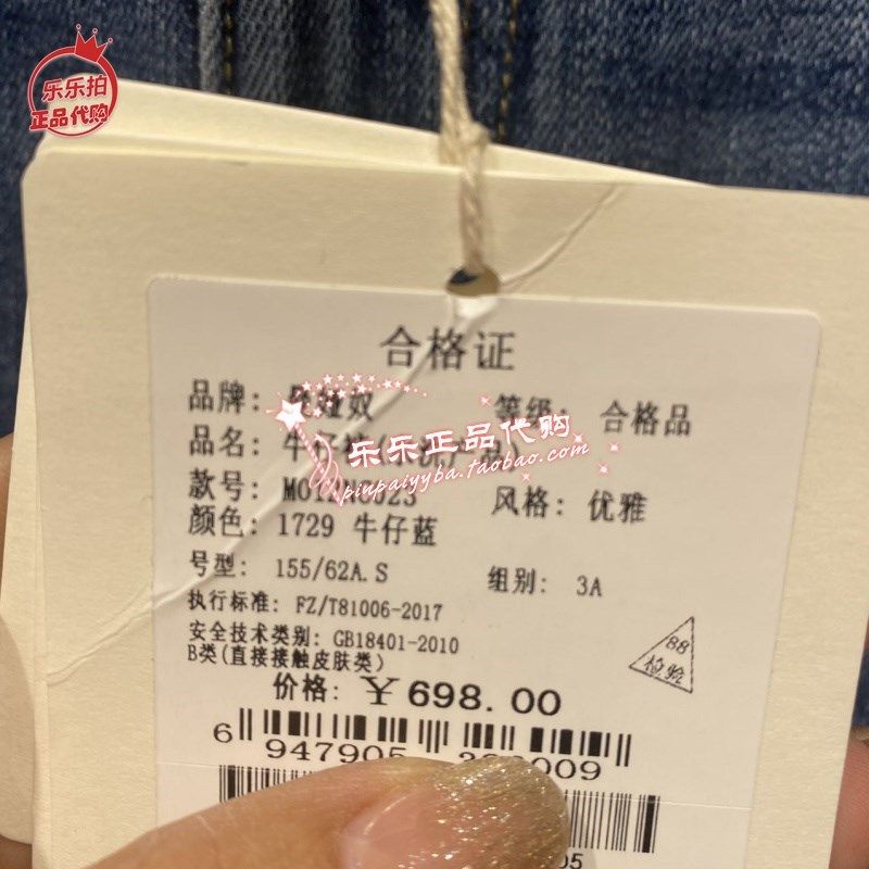 现货 商场专柜正品2024春装新款微喇牛仔裤MO12NC023 698