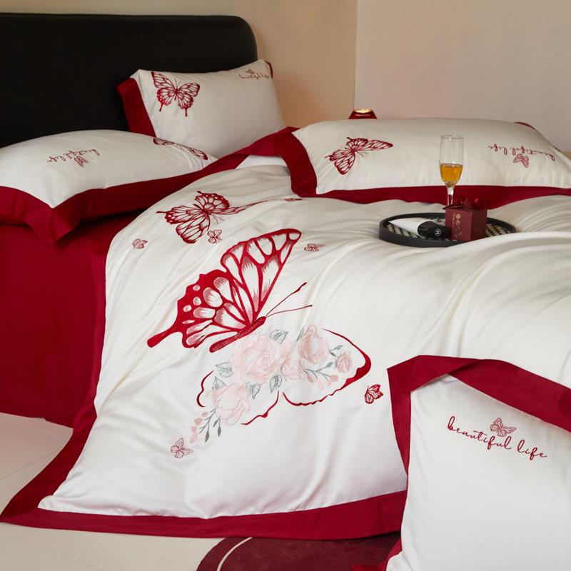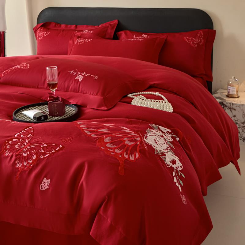 高档结婚四件套红色喜庆纯棉全棉床单被套新婚庆喜被婚嫁床上用品
