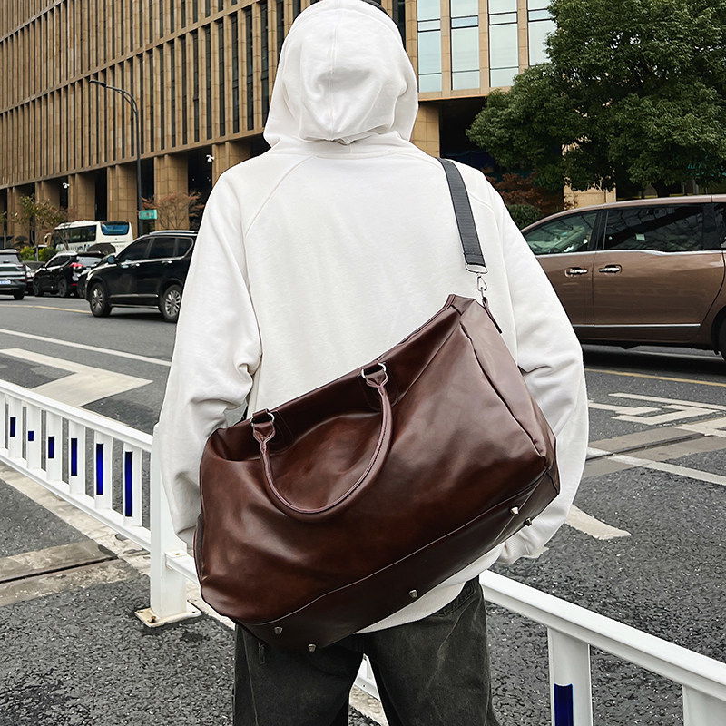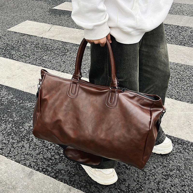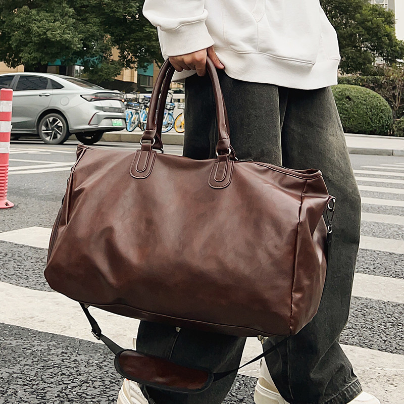 健身包男士复古PU单肩斜挎包手提旅行包大容量短途出差旅游行李袋