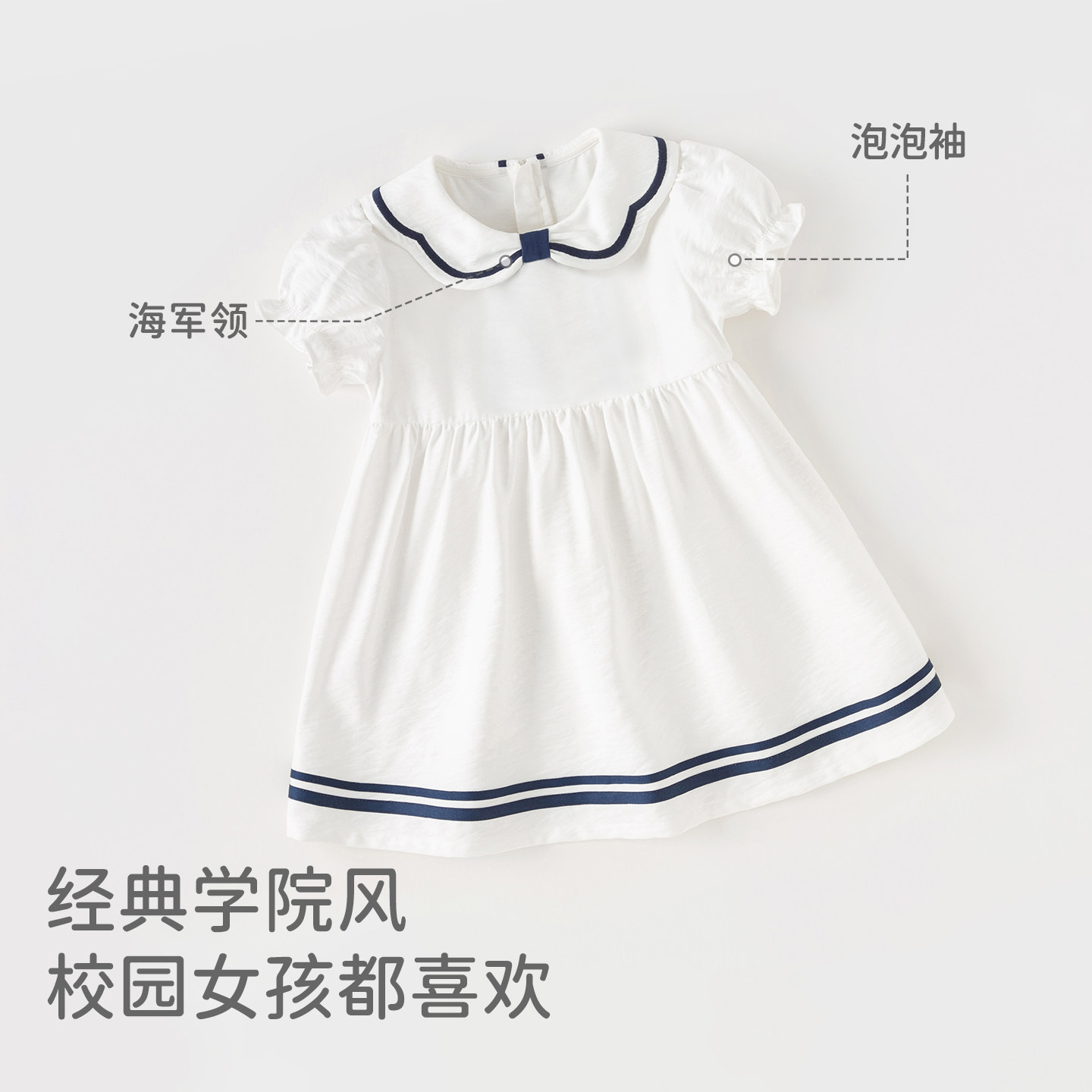 戴维贝拉女童连衣裙新款夏装儿童裙子小女孩学院风公主裙洋气童装