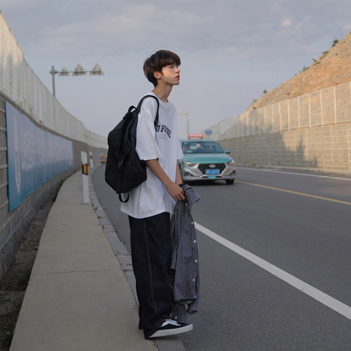 GOGOSOON短袖T恤男2025新款夏季杏色日系半截袖基础款小众高级感