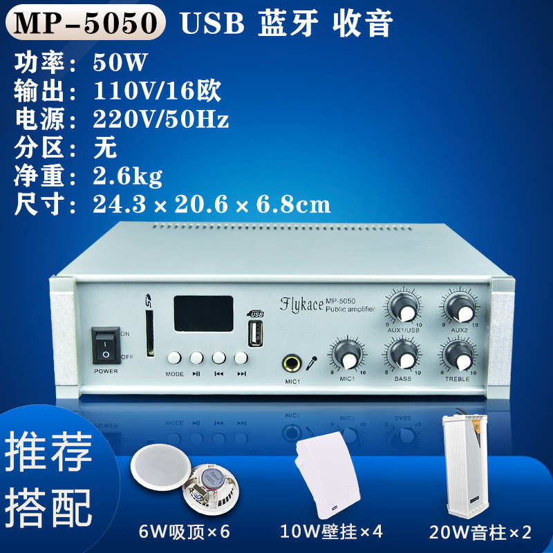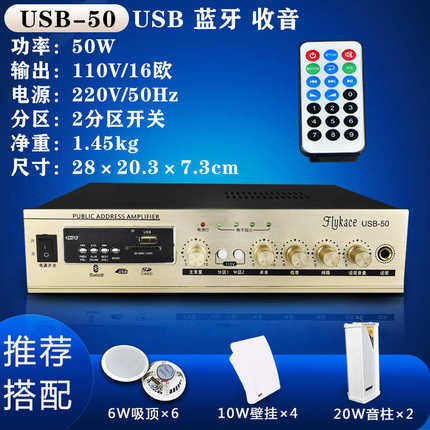 50W家用定阻定压功放机MP3店铺背景音乐功放吸顶音响喇叭功放 USB