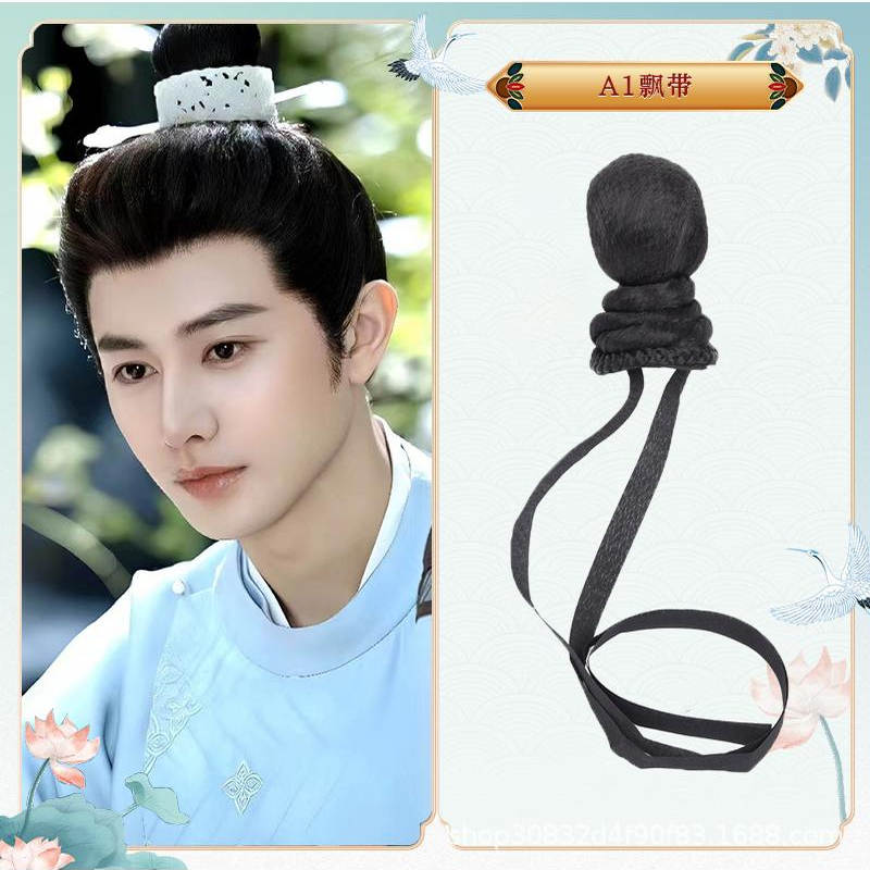 古装网纱束发假发男抹额懒人假发