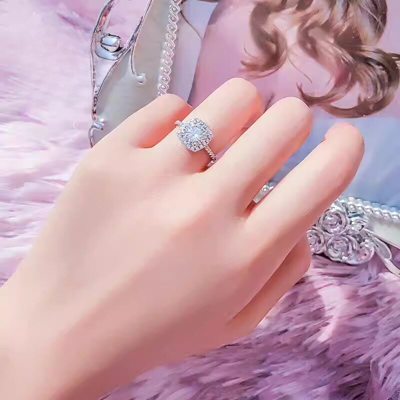 莫桑石戒指女ins不掉色1-2克拉钻戒一对情侣款结婚情人节礼物