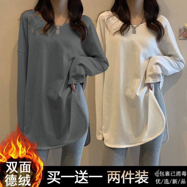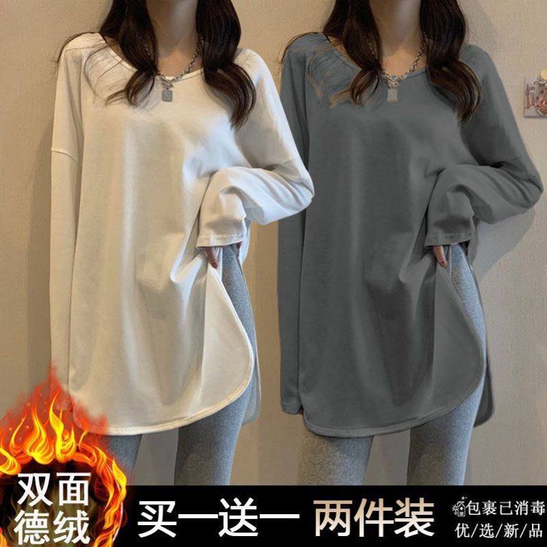 单/两件装 大码女装200斤德绒打底衫女秋冬长袖t恤宽松中长款上衣