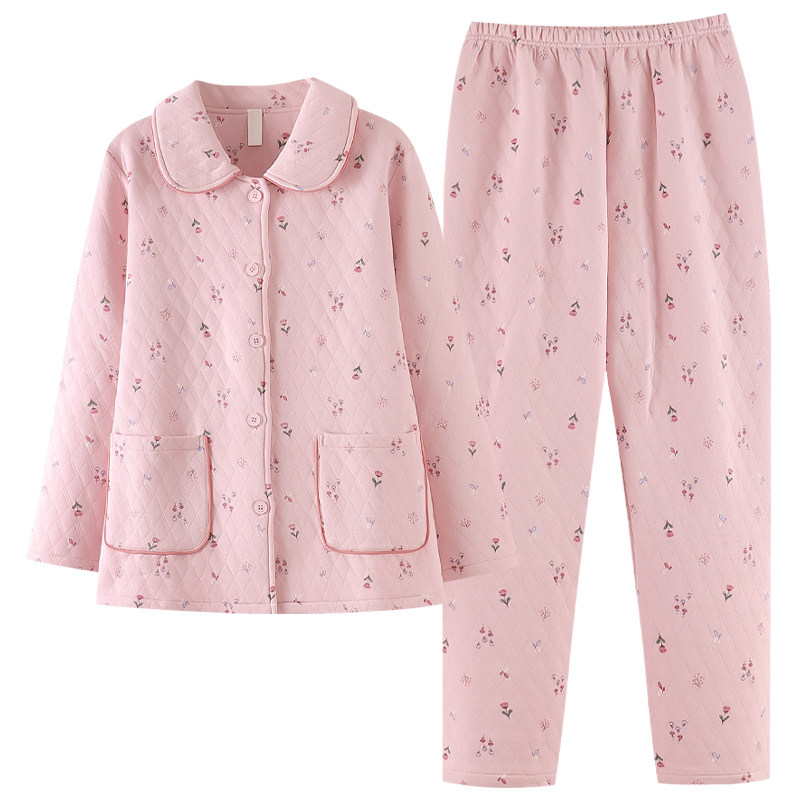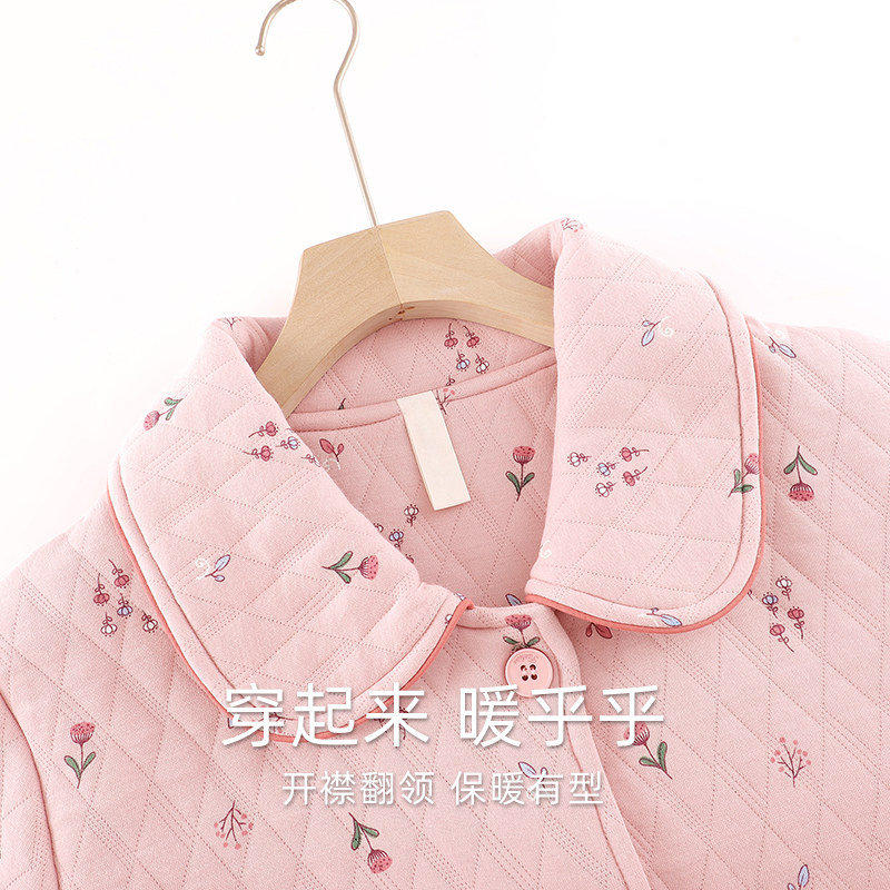 浪莎夹层睡衣女士秋冬季空气纯棉加厚保暖宽松大码家居服冬季套装