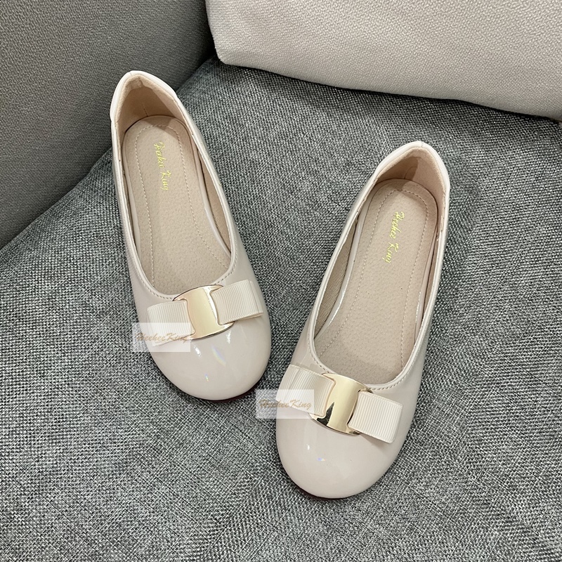 女童皮鞋2025春秋新款蝴蝶结芭蕾鞋漆皮鞋休闲软底公主鞋亲子单鞋