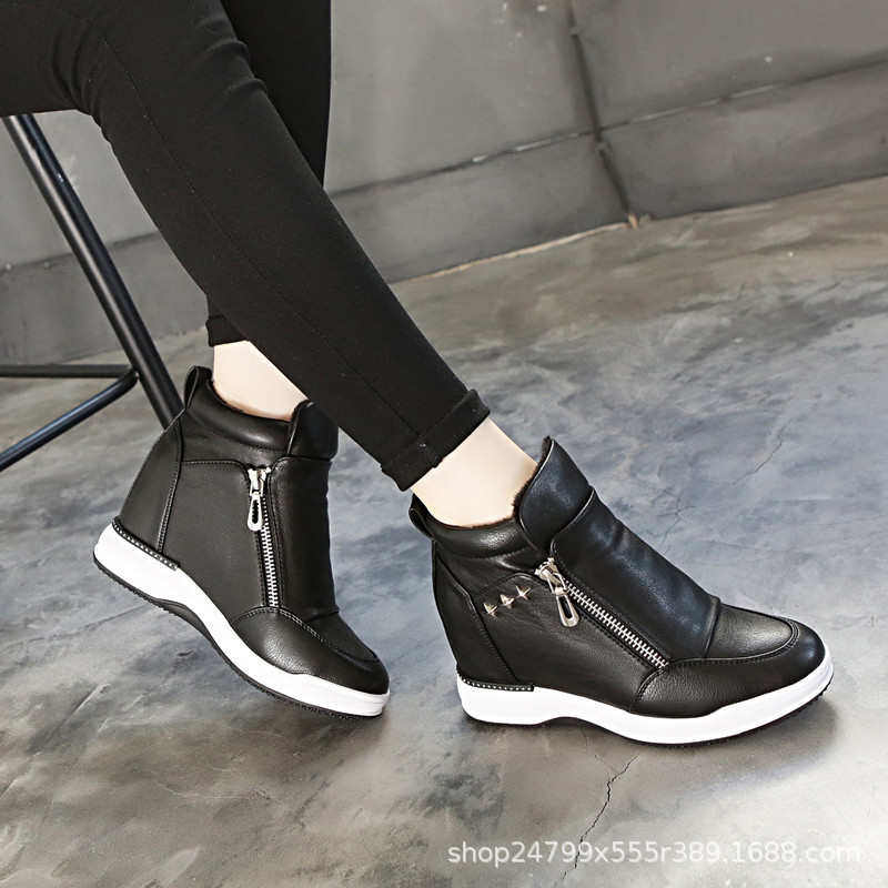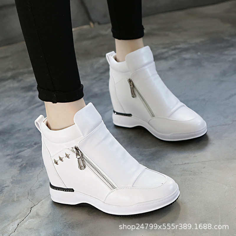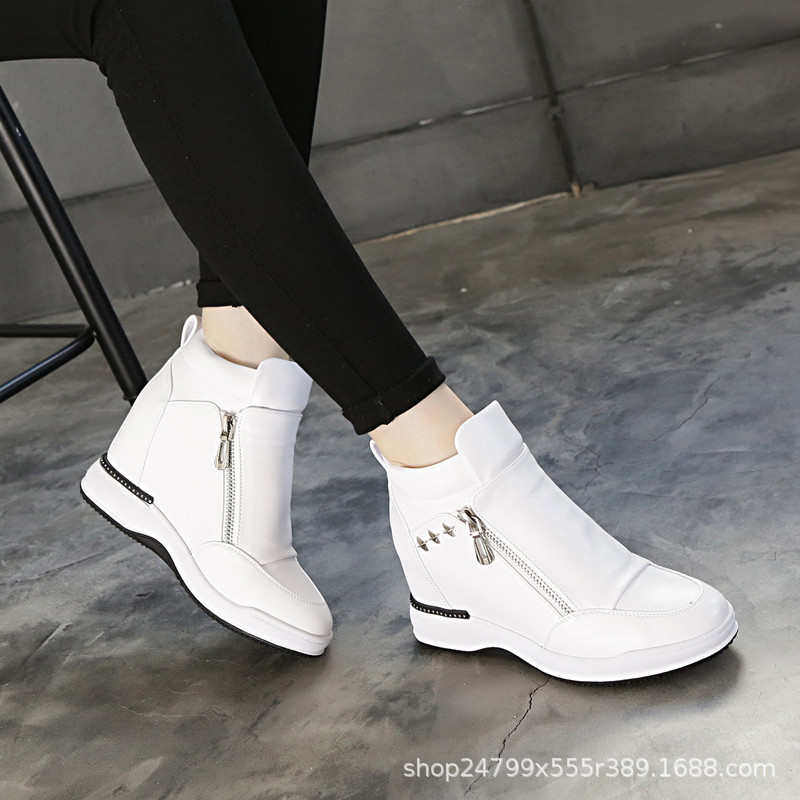 品质2025新款春季休闲鞋坡跟小白鞋单鞋女8cm运动鞋内增高女鞋