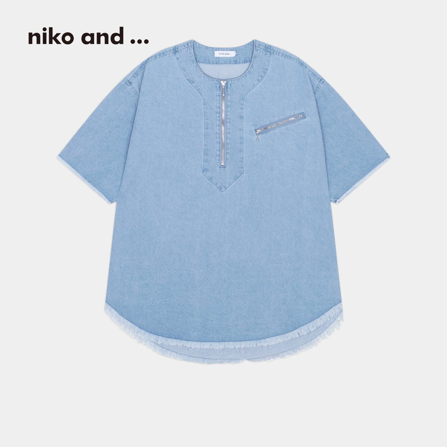 niko and ...牛仔衬衫男2026春季新款半拉链棉质短袖上衣643813