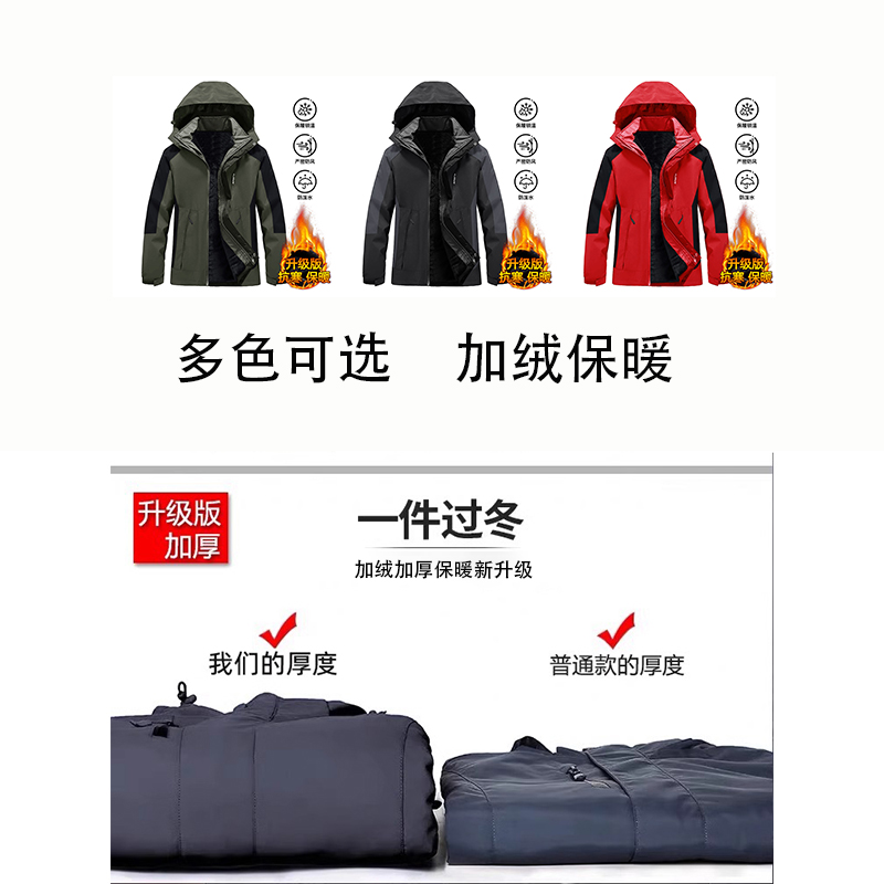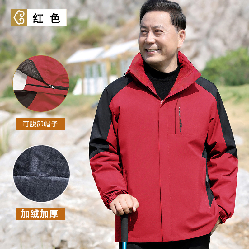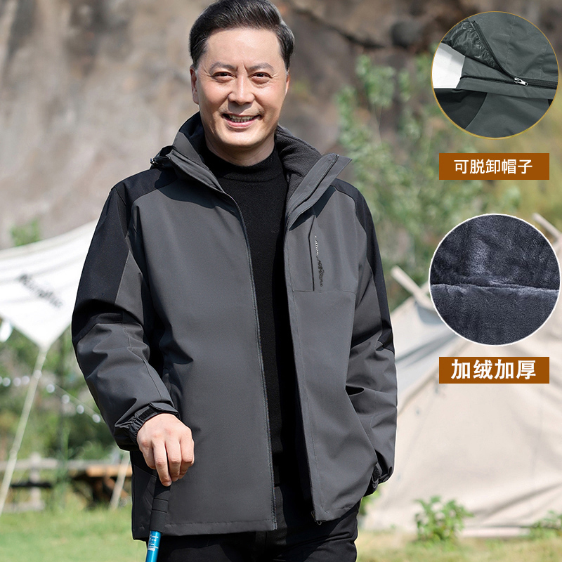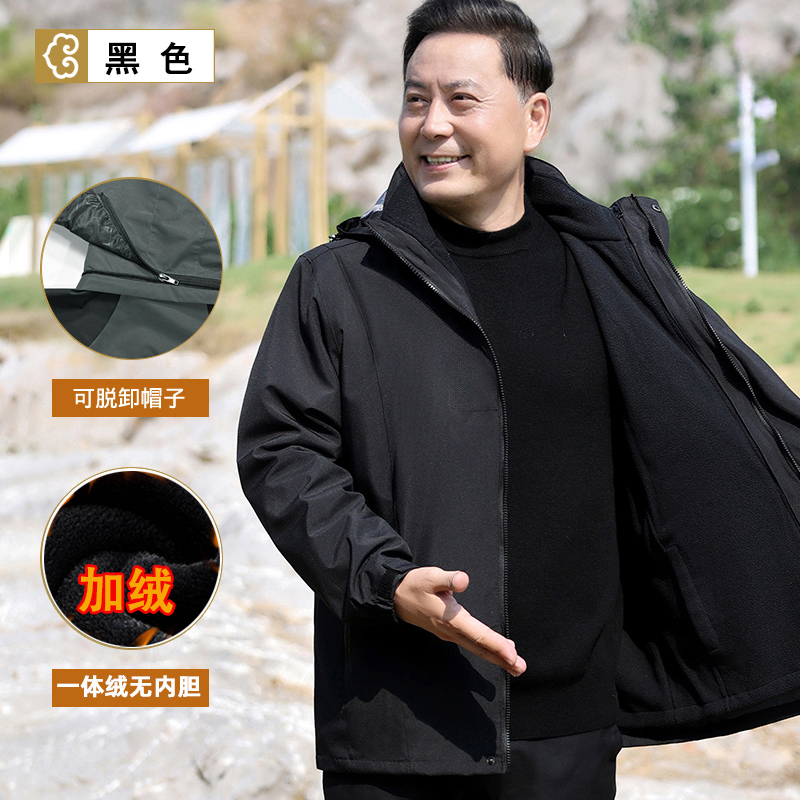 户外爸爸棉衣外套中年男士保暖加绒夹克冬装中老年人上衣冲锋衣