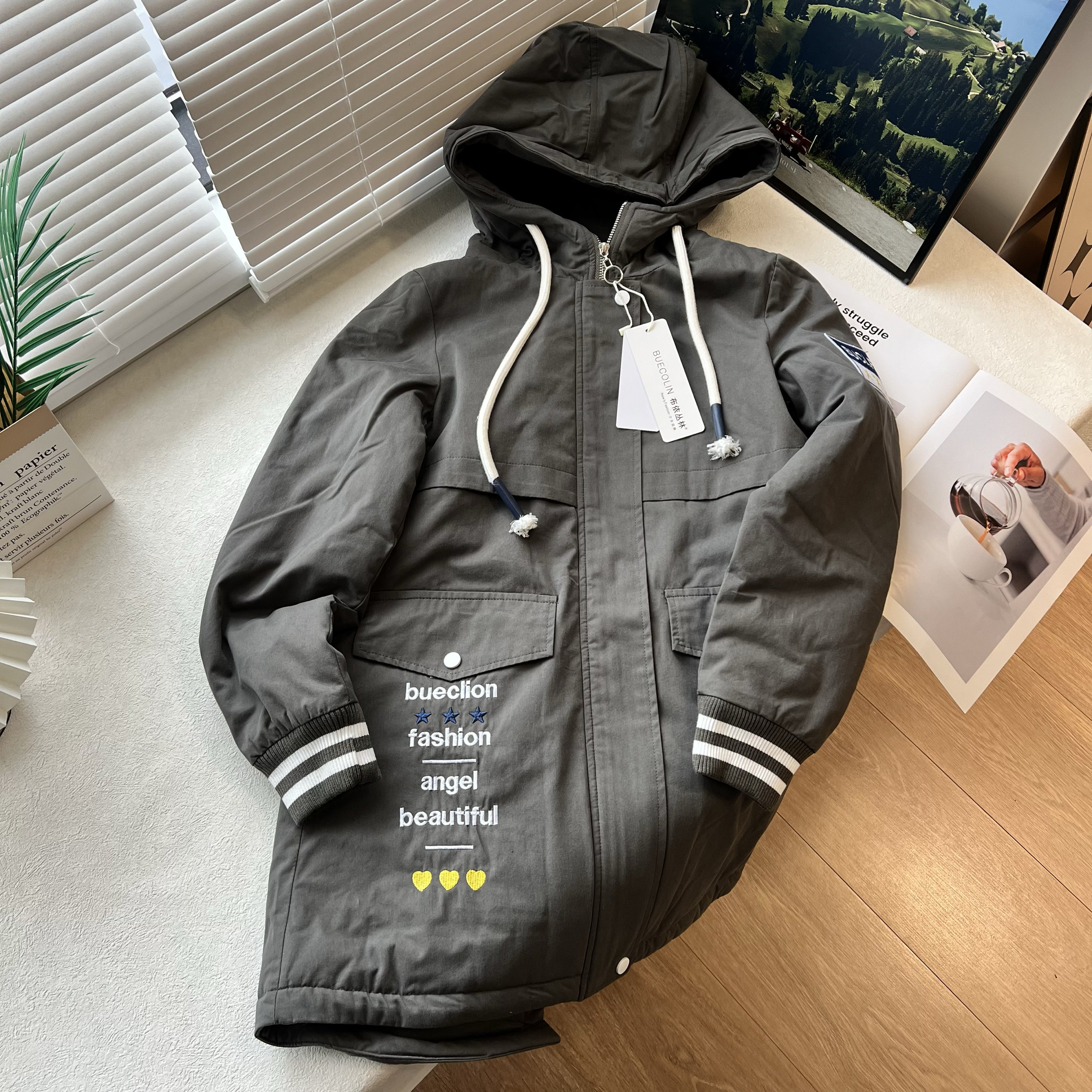 T冬款青少年棉服 童装保暖男女童卫衣外套开衫棒球衣加厚棉衣长款