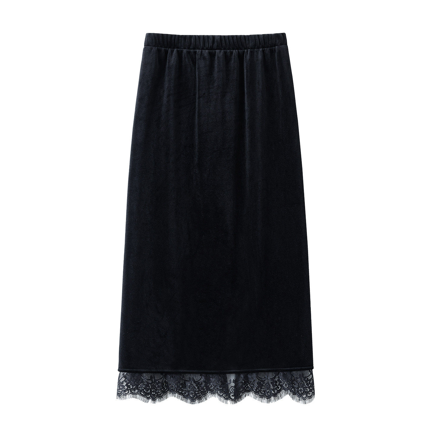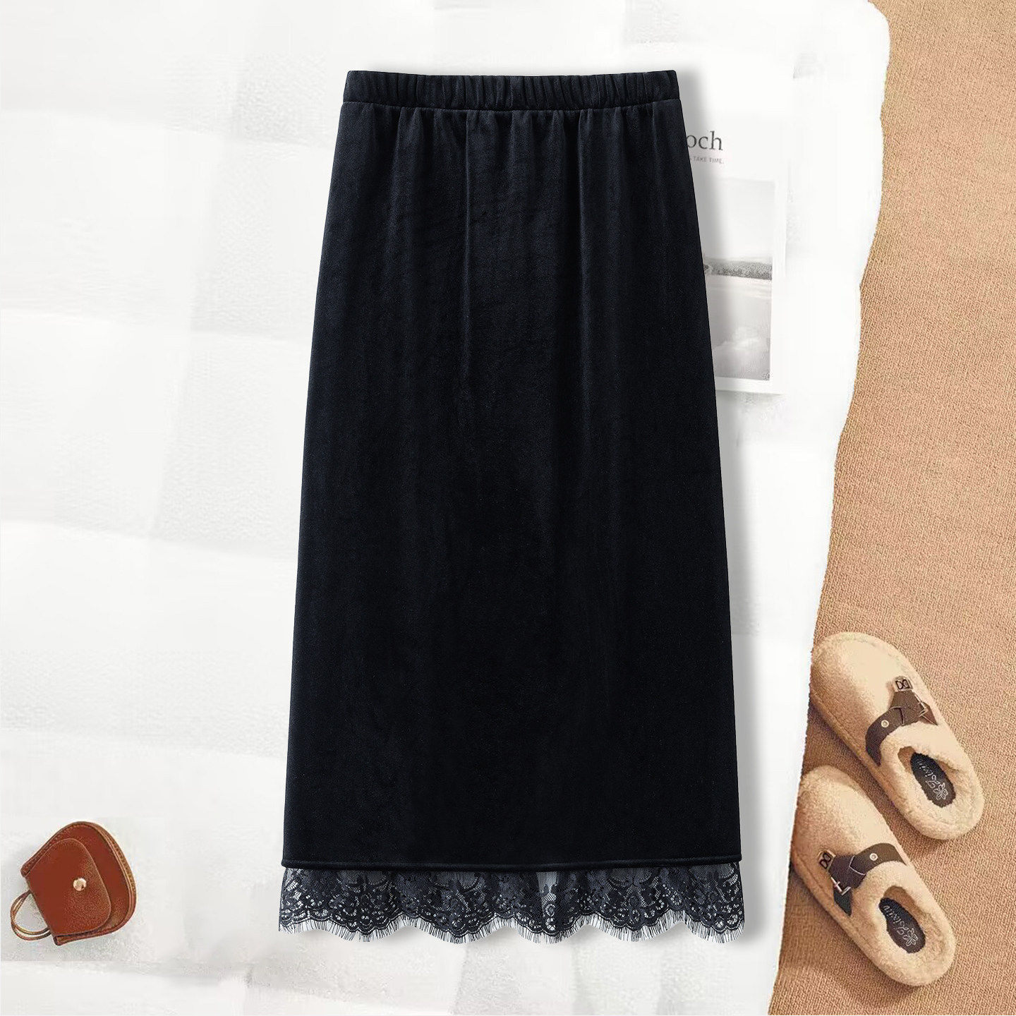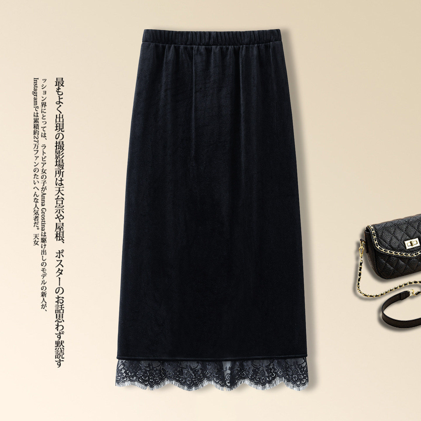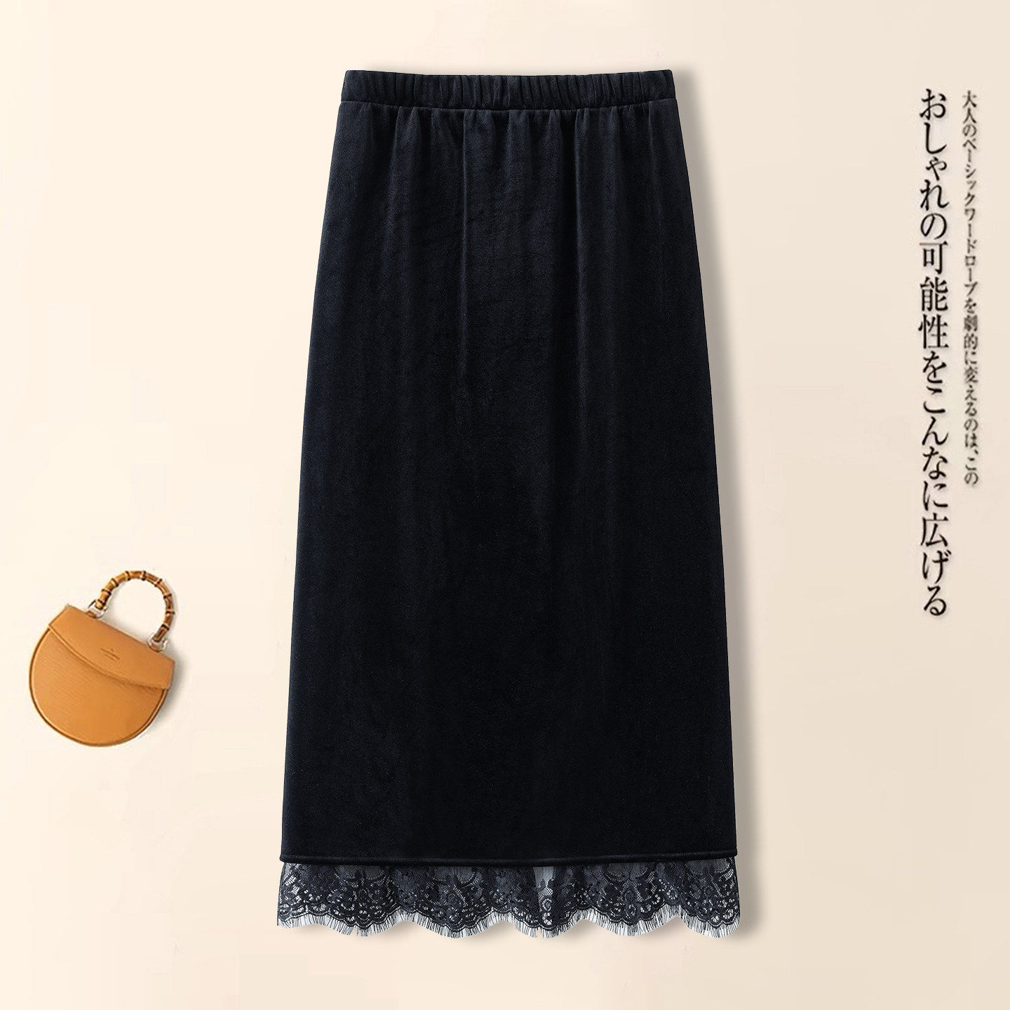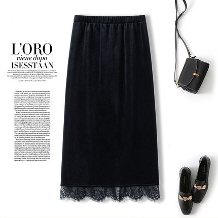 拉夏贝尔蕾丝花边金丝绒半身裙2026年秋冬季开叉a字包臀一步裙子
