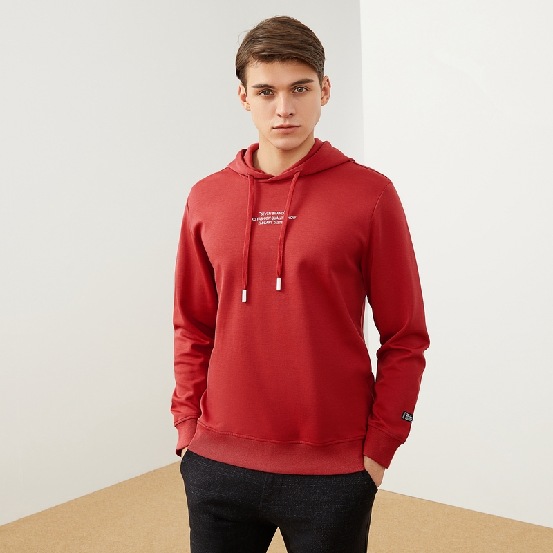 柒牌连帽卫衣男青年运动休闲时尚字母绣花长袖T恤帽衫衣