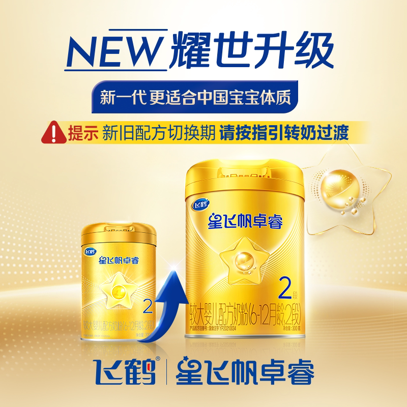【新客0元试喝】飞鹤星飞帆卓睿2段乳铁蛋白奶粉300g*1罐专利HMO