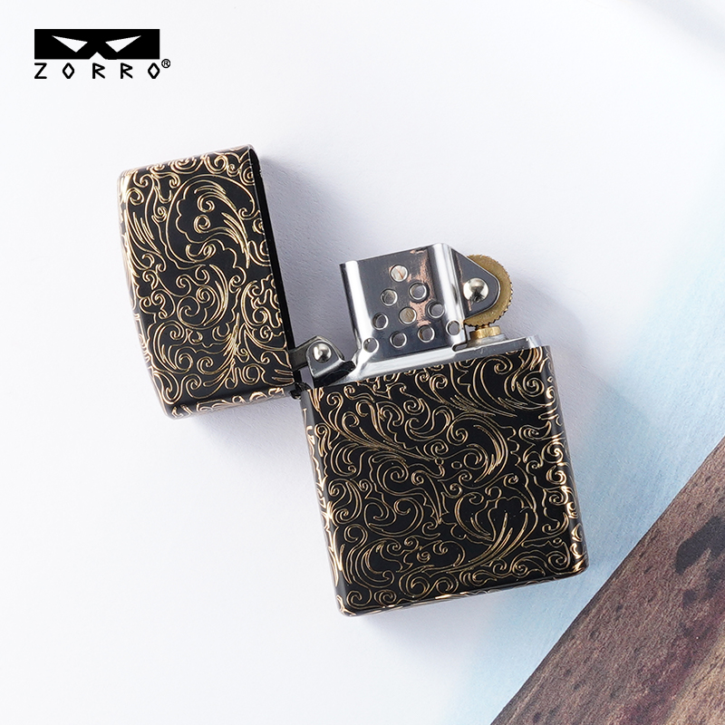 zorro正品佐罗煤油打火机二代鎏金锦绣流云防风高级生日送男友礼