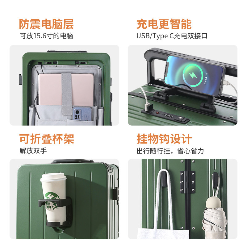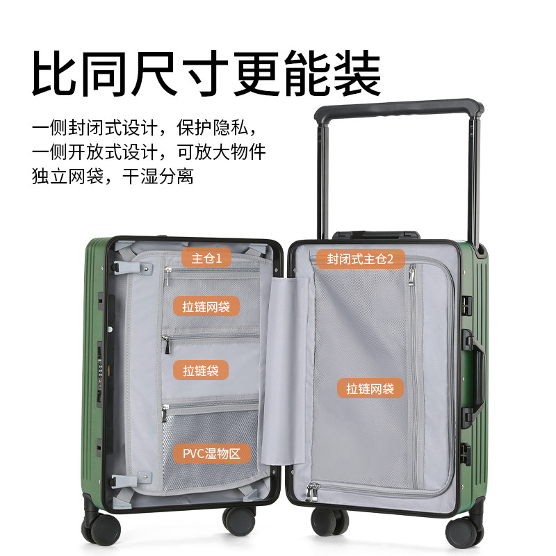 宽拉杆行李箱前置开口小型20寸登机箱女多功能大容量24寸旅行箱男