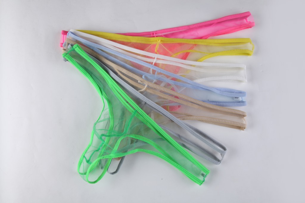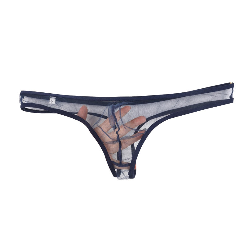 男士内裤T裤超薄舒适全透明透视囊袋低腰三角细网纱丁字裤夏