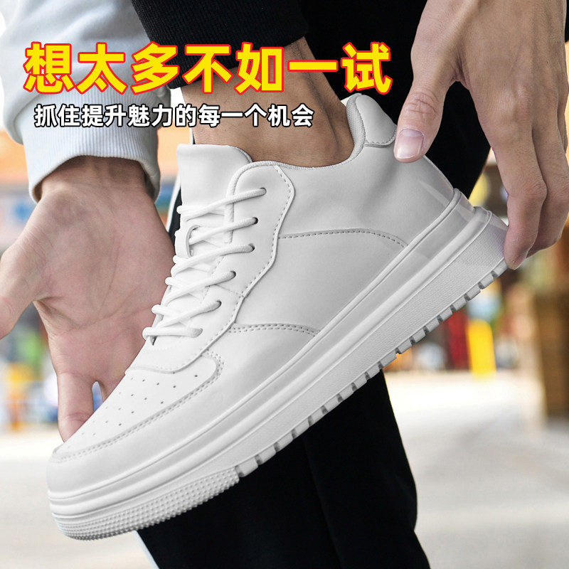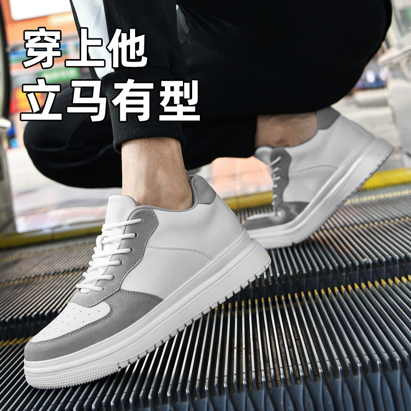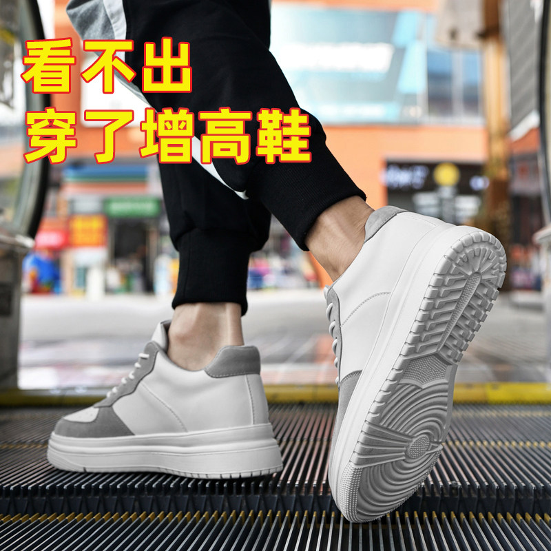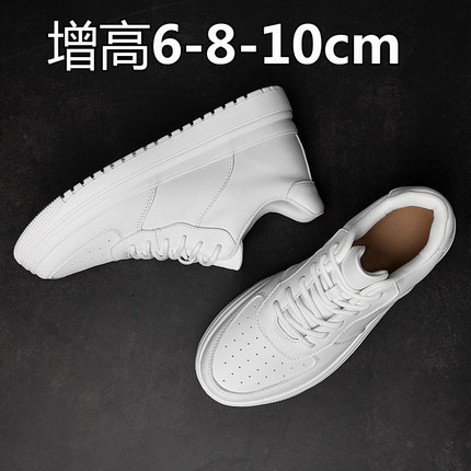 春增高鞋男8cm小白鞋轻便透气牛皮休闲板鞋内增高男鞋10cm小码37