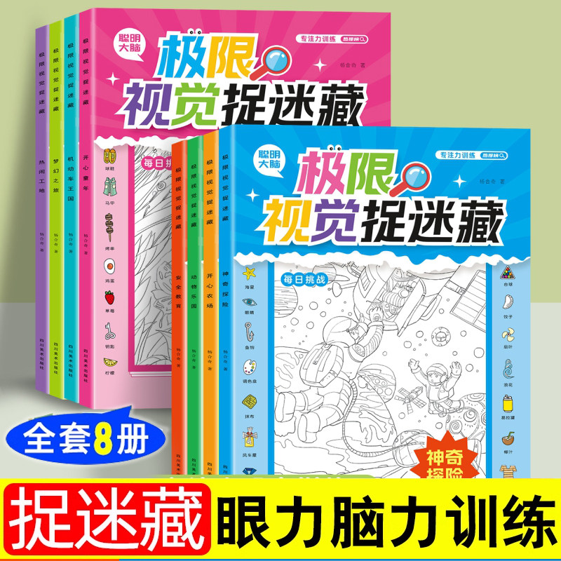 极限视觉挑战全8册 安全教育图画捉迷藏小学生找东西的图画书高难度幼儿涂色找一找隐藏的图画找不同儿童开发智力游戏专注力训练书