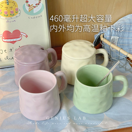 平底陶瓷杯子釉下彩高颜值马克杯大容量水杯家用办公室咖啡杯女生