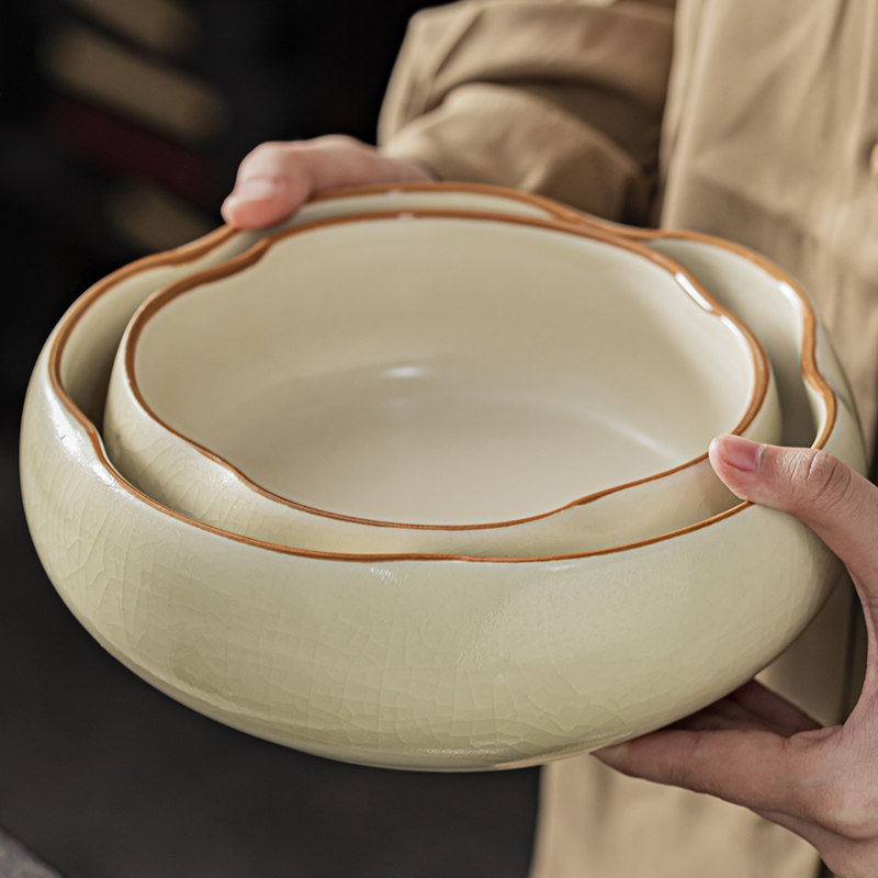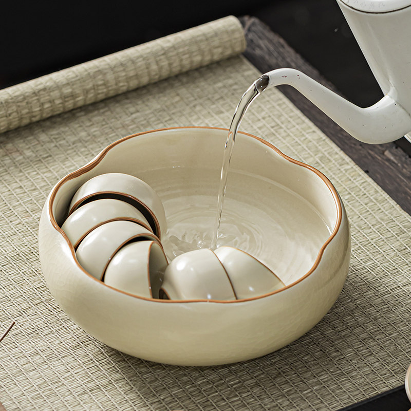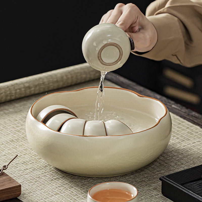 2024新款汝窑茶洗家用茶洗缸开片水盂杯洗大号建水茶渣缸笔洗配件