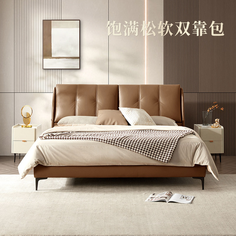 顾家家居意式轻奢真皮床可调节靠包卧室皮床191