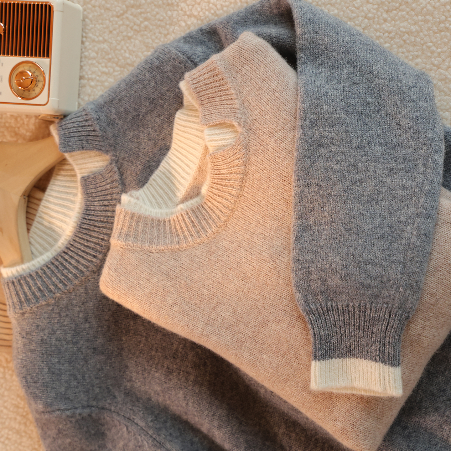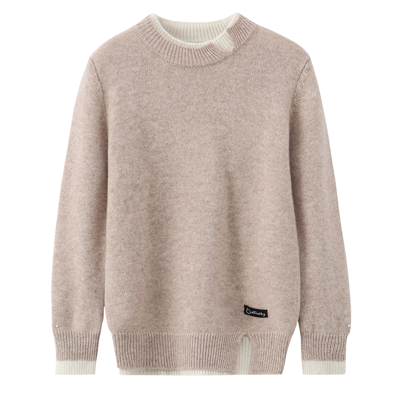 2025秋冬新款儿童羊毛衫100%男女童加厚毛衣撞色假两件羊绒打底衫