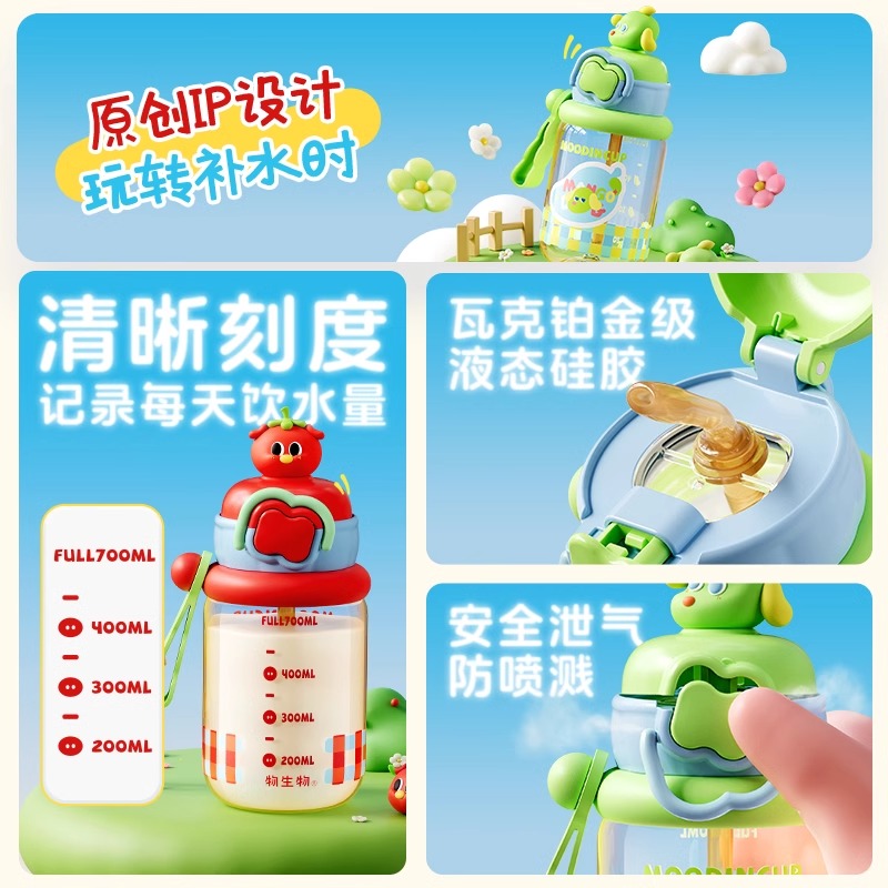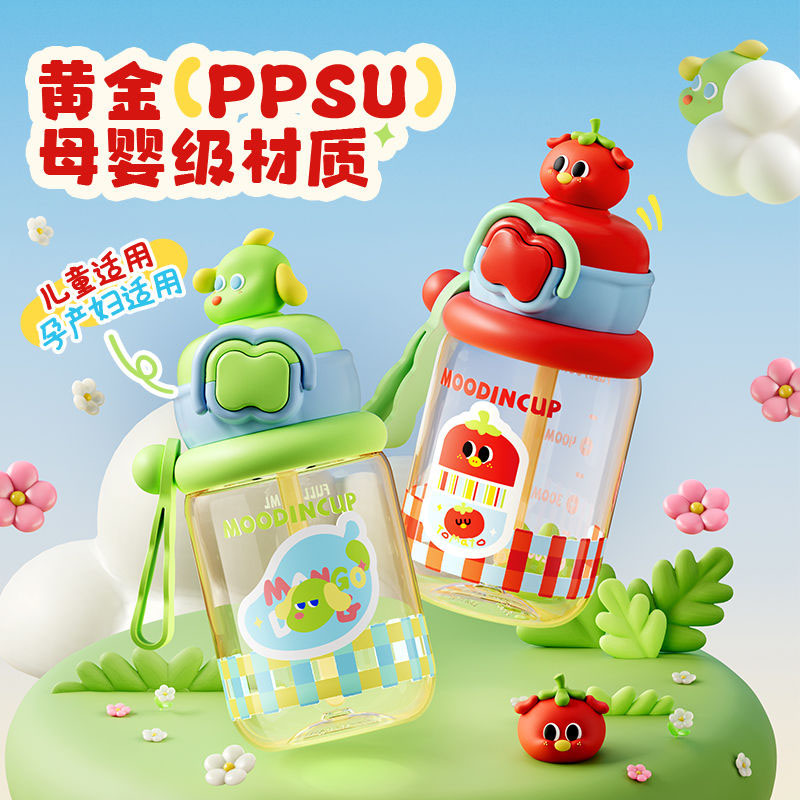 物生物儿童吸管水杯女PPSU卡通幼儿园学生上学专用杯子便携喝水壶
