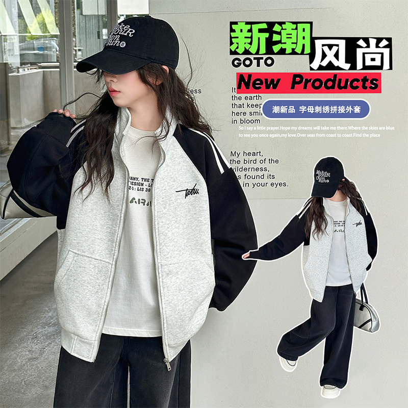 女童外套春秋冬款2025新款儿童秋装棒球服大童装秋季女孩加绒卫衣