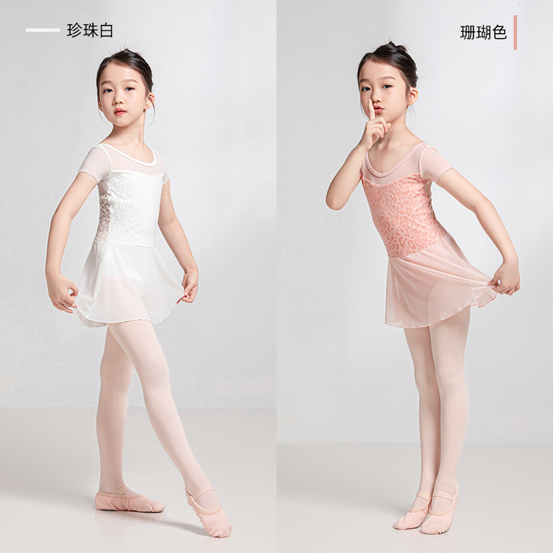 Sansha 三沙儿童舞蹈裙子女 短袖芭蕾舞服轻薄豹纹连体练功服表演