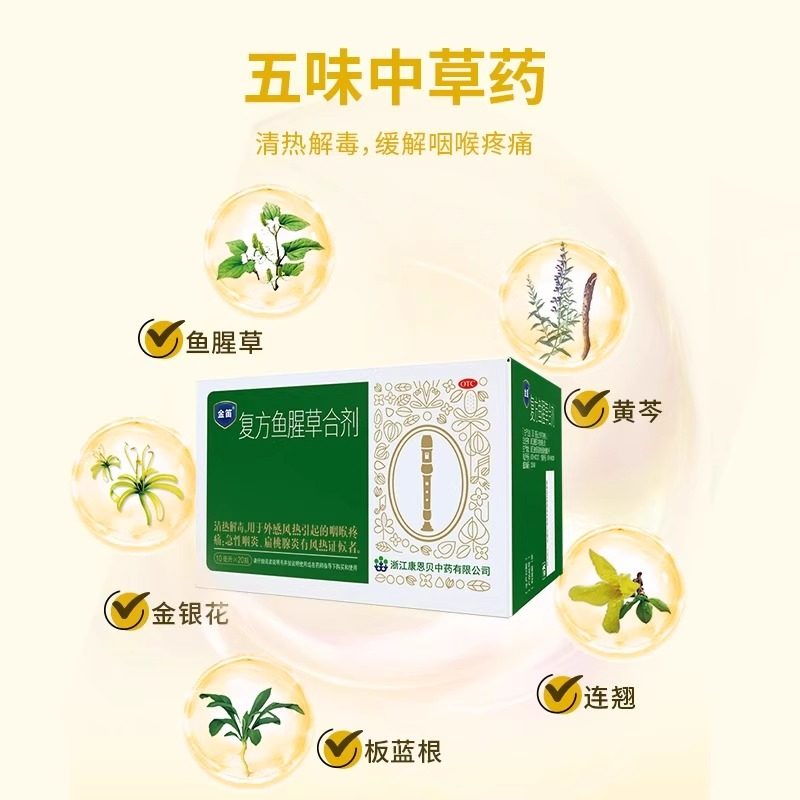 康恩贝金笛复方鱼腥草合剂18支口服液咽喉疼痛急性咽炎扁桃腺炎20