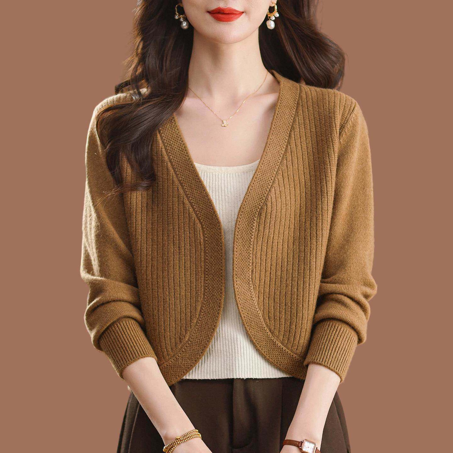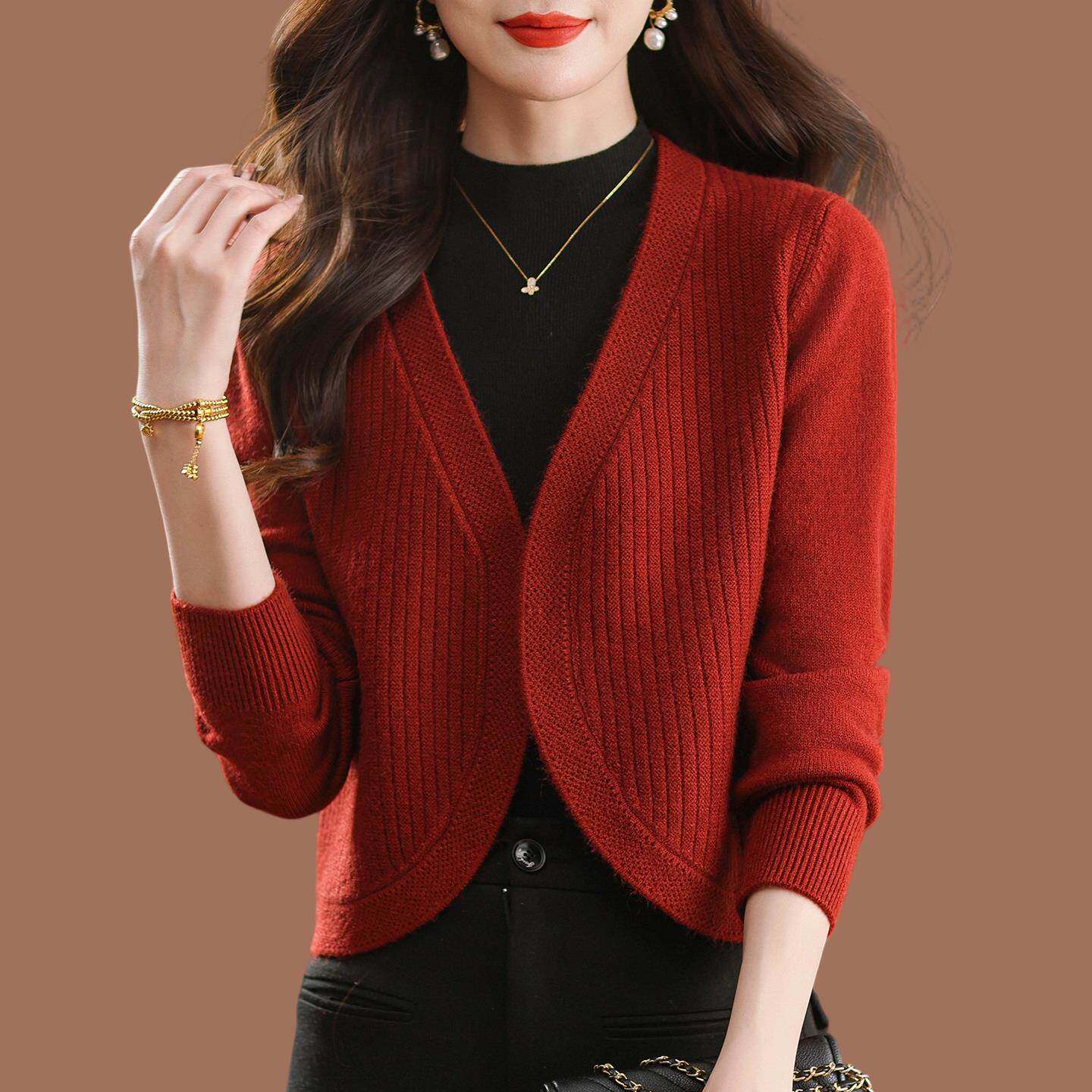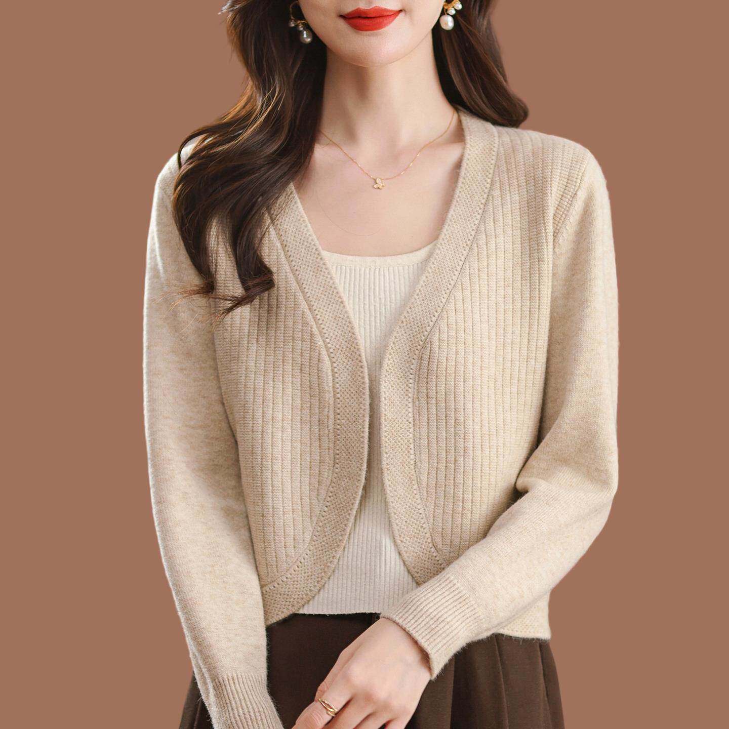 鄂尔多斯市羊毛针织开衫外套女2025早秋外搭小个子短款配旗袍披肩