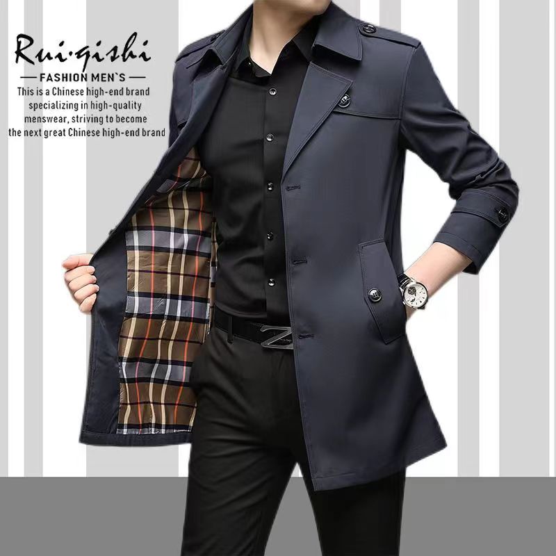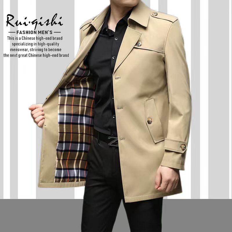断码休闲西装领风衣男春秋季中长款商务中年男士夹克薄外套爸爸装