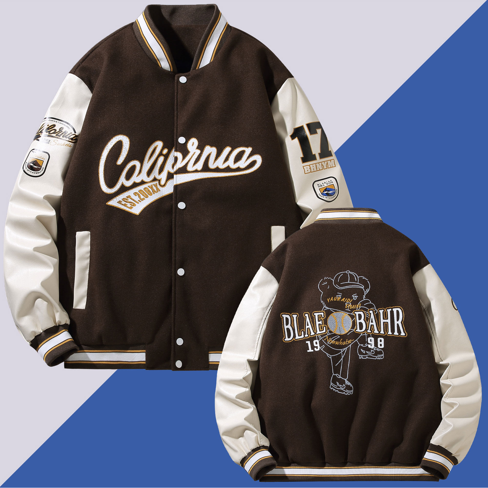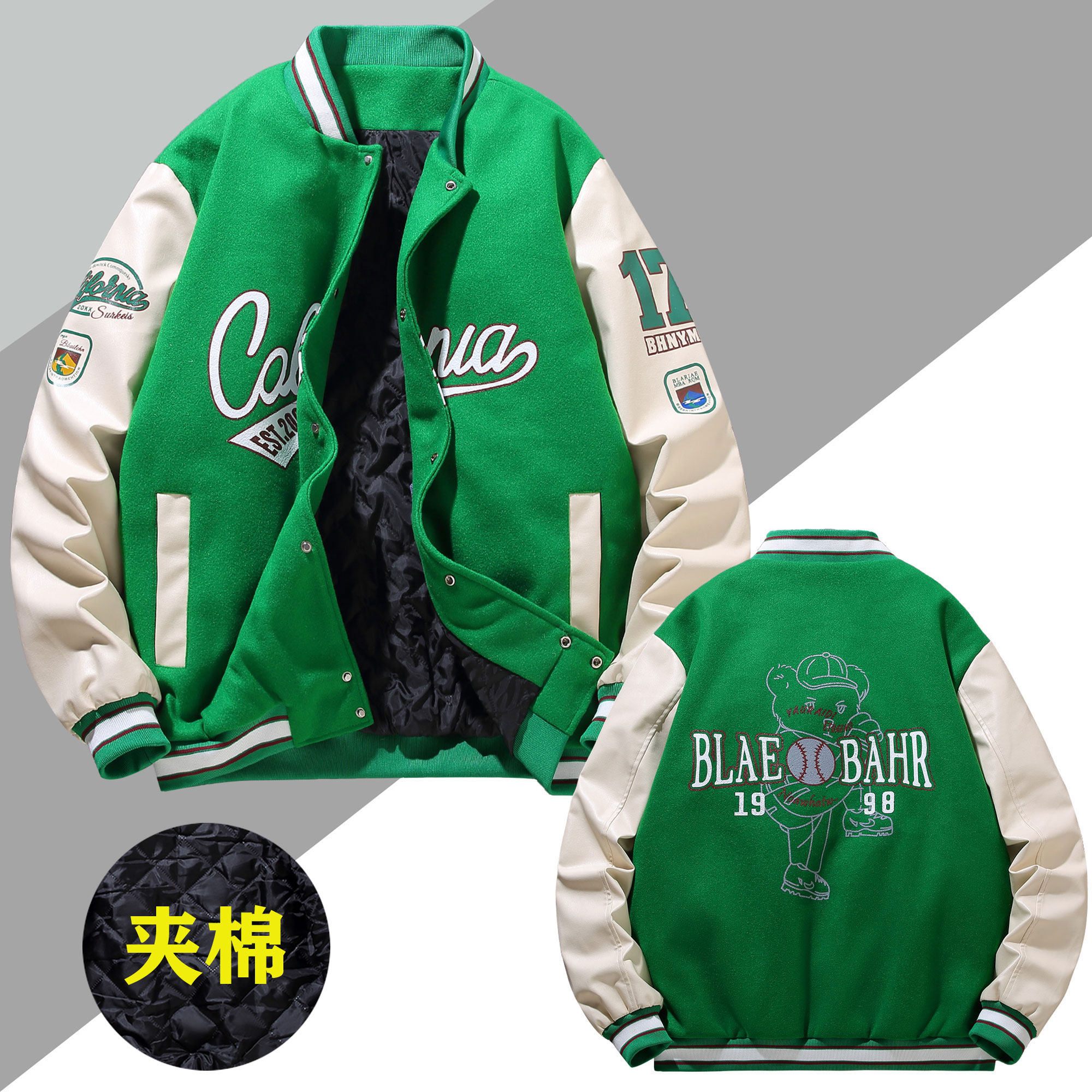 oversize夹克男夹棉青少年春秋外套2025新卫衣潮牌加肥加大棒球服