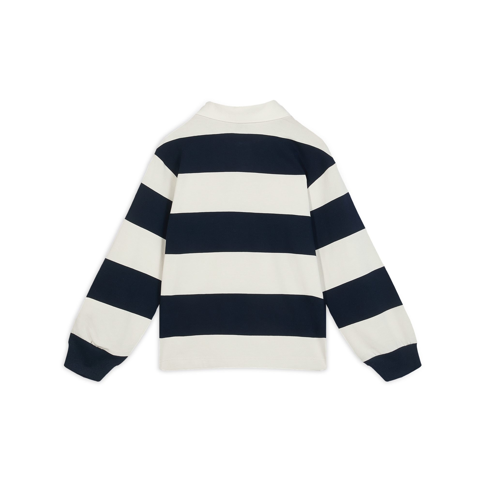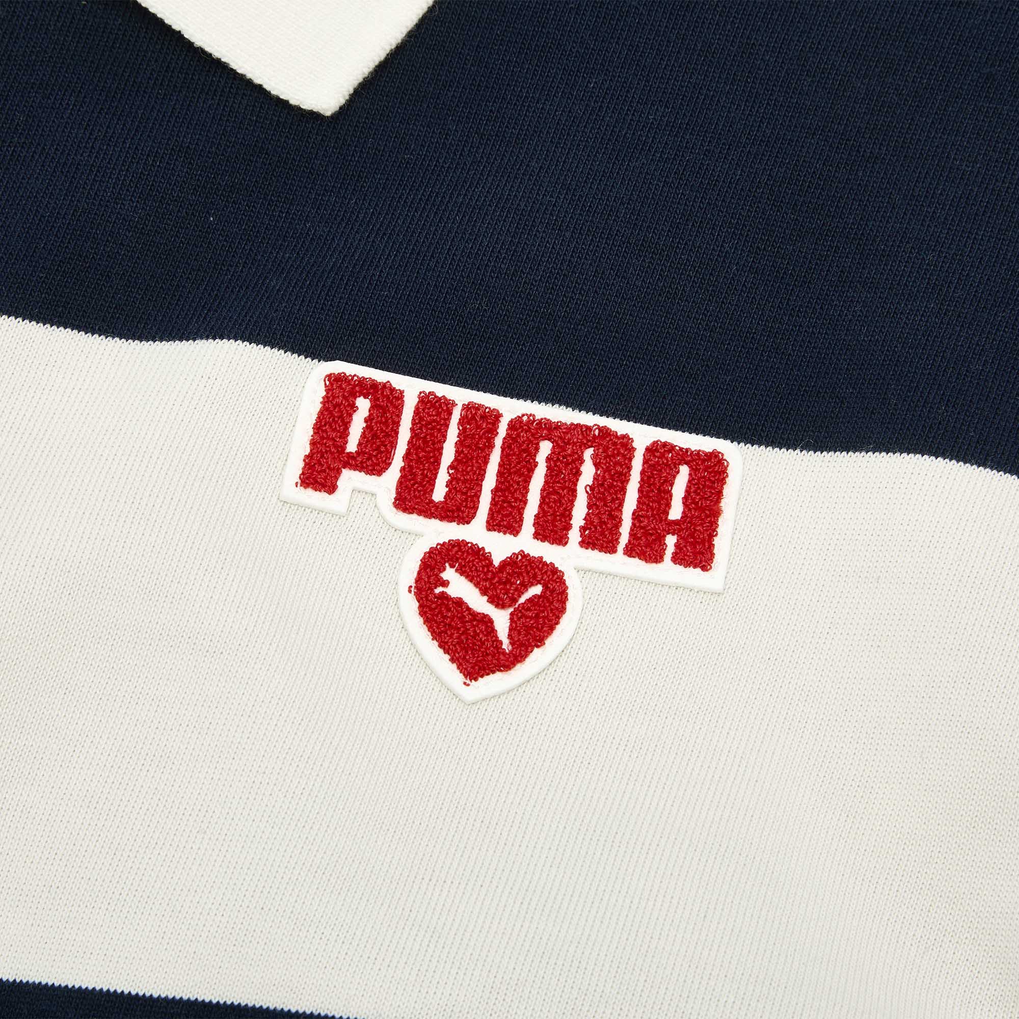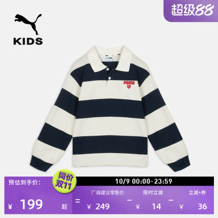 复古纯棉蓝白条纹长袖POLO衫女童PUMA彪马经典刺绣运动上衣950545
