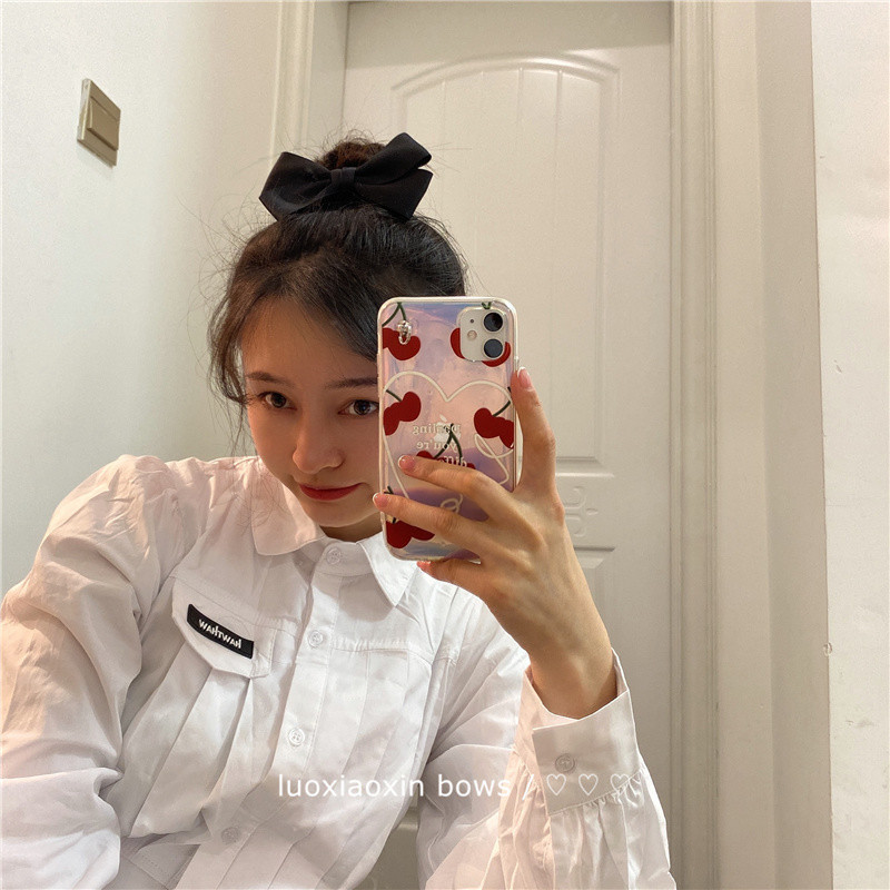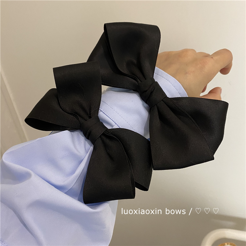 丸子头系列 复古黑色蝴蝶结发绳锻面气质韩国简约马尾头饰头绳女