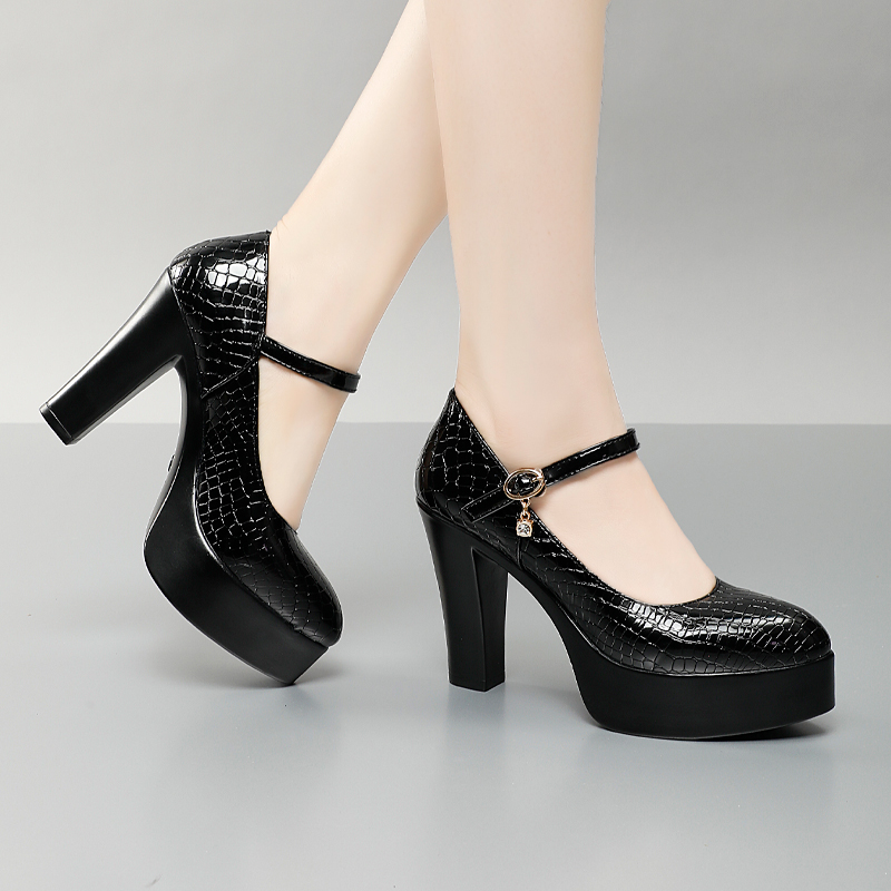 花纹漆皮尖头单鞋女结婚礼服走T台高跟鞋大码真皮时装职业皮鞋子